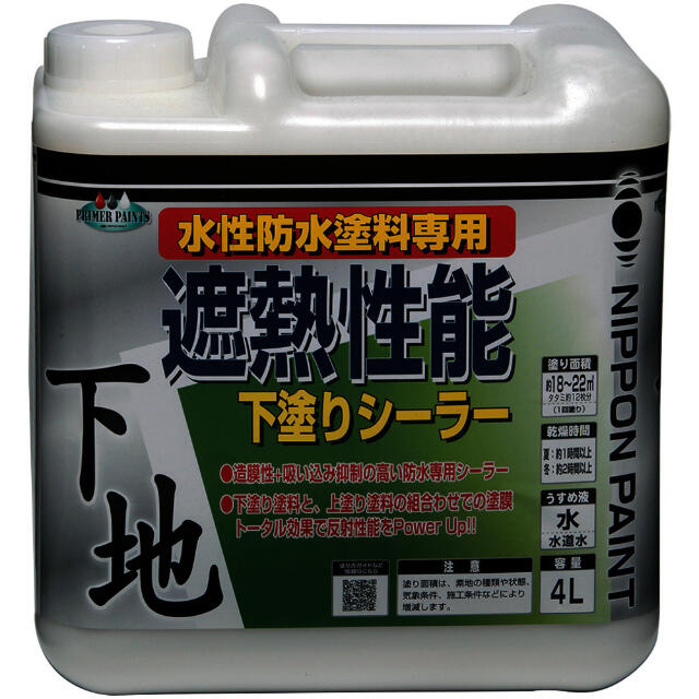 ●水性ベランダ・屋上用防水塗料専用の下地剤です。●コンクリート、モルタルなどの素地面との密着性に優れています。●耐水、耐アルカリ性が良く、劣化しにくく、耐久性に優れています。●色:透明●容量(L):4●乾燥時間:夏(30度)約1時間、冬(10度)約2時間●塗り重ね可能時間:約1時間以上(夏30度)、約2時間以上(冬10度) 質量5000g