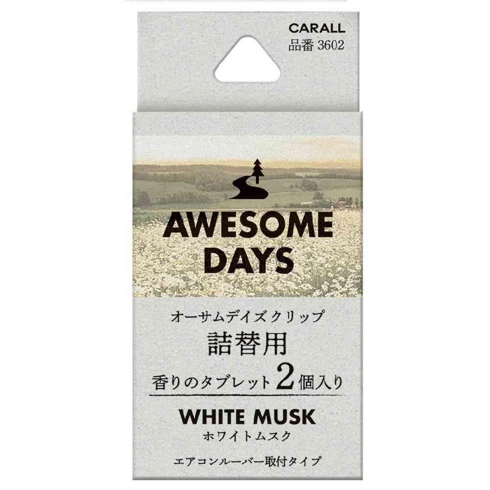 オーサムデイズ クリップ専用の詰替用 使用期間 :約1ヶ月 ※使用状況により異なります。 ホワイトムスク:満開の花々に囲まれてゆったりと散歩する時の花畑の香り