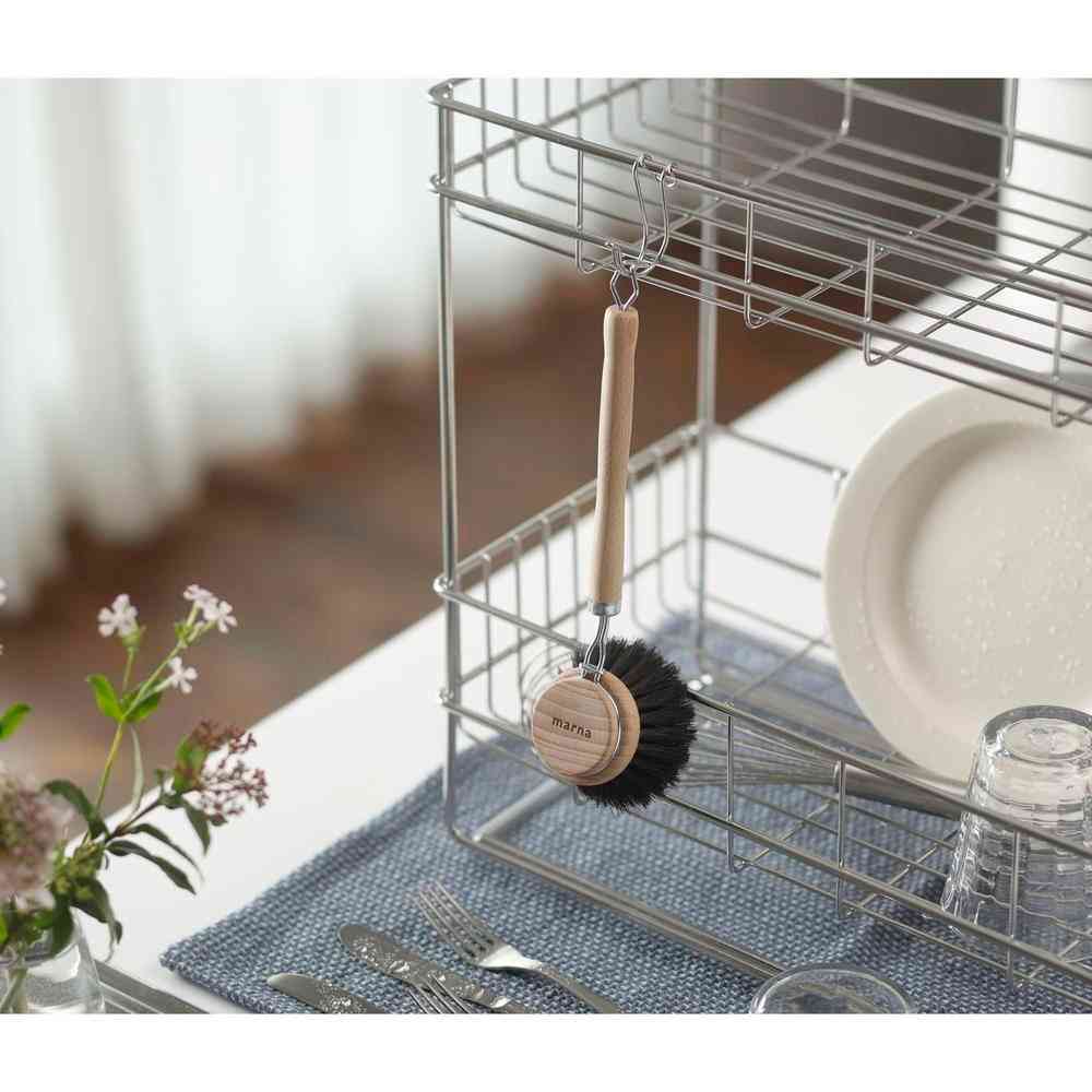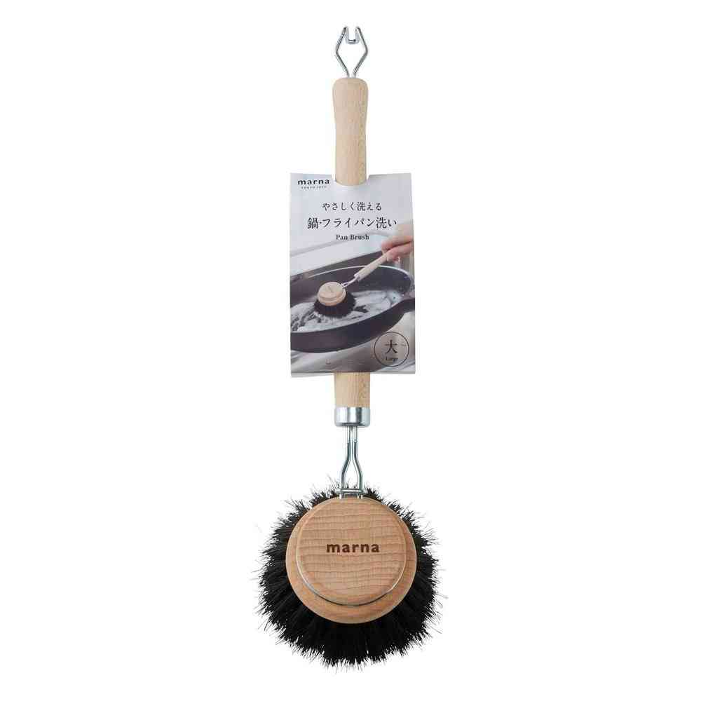 フッ素樹脂加工のフライパンも洗えるブラシ耐熱・耐薬品性に優れた、馬毛だけを使用した泡立ちのいい柄付きキッチンブラシです。 傷が気になるふっ素樹脂加工のフライパンやホーロー鍋等もやさしく洗えます。 ガラス食器、ステンレス流し台など傷つきやすいものにも使用できます。 柄付きで手を汚さずに洗えます。 掛けて収納できるフック付き。