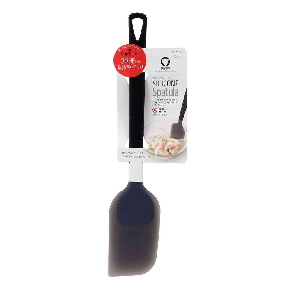 三角断面が手にフィット。握りやすさを追求した、トライアングリップ。 握ることを追求した「三角断面グリップ」が手によくフィットするキッチンツールです。 調理中の動作を効率よくスムーズに。 熱に強く、鍋やフライパンを傷つけにくいシリコーン製です。 トライアングリップのシリコーンヘラは他のヘラと比べてちょっと柔らかく、お好み焼きやパンケーキなどのゆるい生地を残さずとりきります。 ゴロッとした具材とソースをきれいに集めて混ぜることができます。 柔らかくしなるシリコーンが、ボウルの形に合わせてフィット。気持ちがいいくらいに生地や具材を集められます。 「あと少しがもったいない」そんな時に使って欲しいツールです。 鍋やボウルのカーブにフィットしてスクレーパーのように使えます。 「炒める」「さっくり混ぜる」「返す」など、さまざまな用途にお使いいただけます。 フック穴があるので、壁にかけて収納もできます。 【仕様】耐熱温度:200度 ●食器洗い乾燥機:〇 ●電子レンジ:×