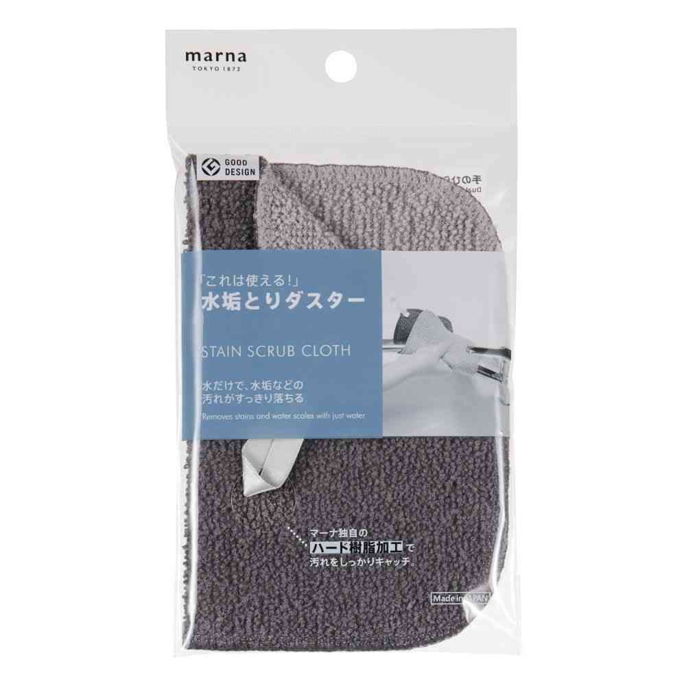 いろいろな形に添って指先感覚で洗いやすい、クロスタイプのダスターです。 マーナ独自のハード樹脂加工で、洗剤なしで水垢がすっきり。 力の入りにくい細かいところも洗いやすく、すみずみまできれいにします。 表裏を異素材にしており、使い分けができます。 濃いグレー面:独自のハード樹脂加工で茶しぶなどのしつこい汚れも、水だけでスッキリ落とせます。 薄いグレー面:ランダムに配置された柔らかいアクリルパイルで優しく洗えます。