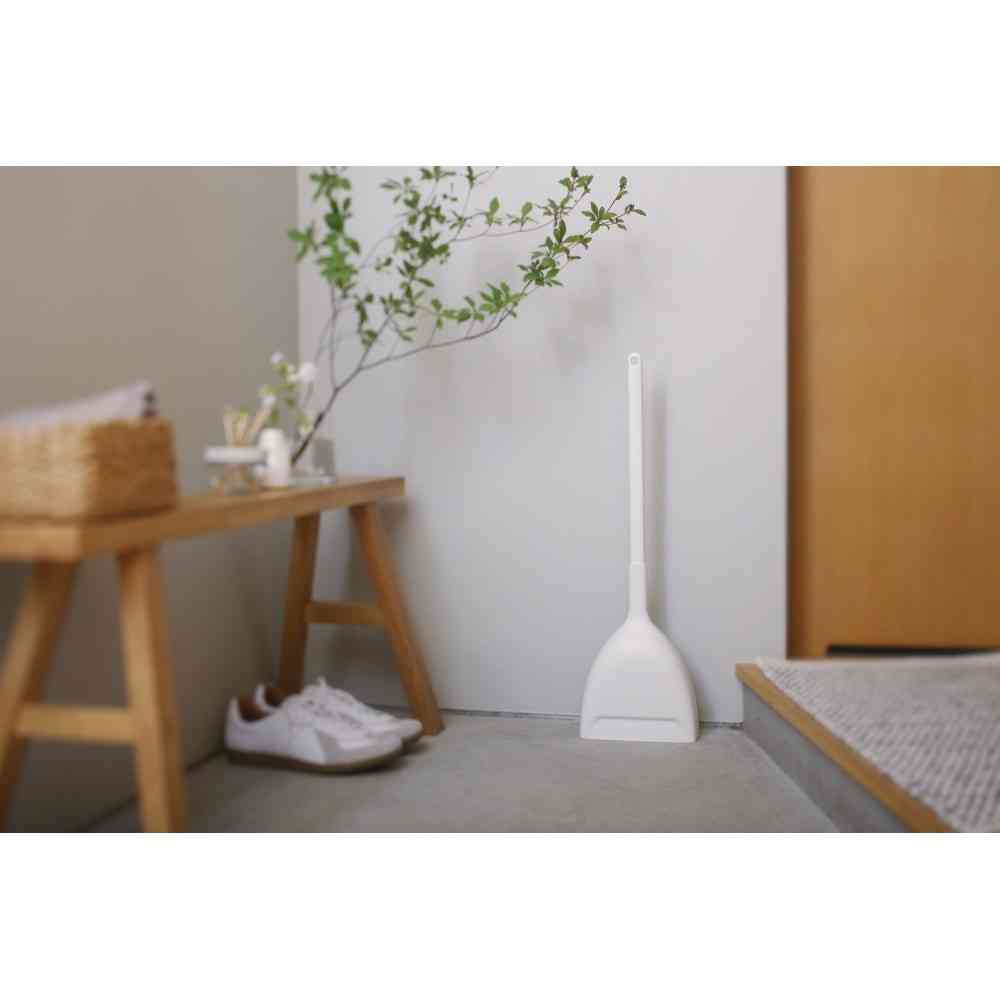 立たせて薄く、コンパクトに収納できるほうきとちりとりのセットです。 握りやすい柄と角度のついたブラシが操作しやすく、隅まできれいに掃けます。 ちりとりにはゴミが戻りにくくなる段差が付いています。