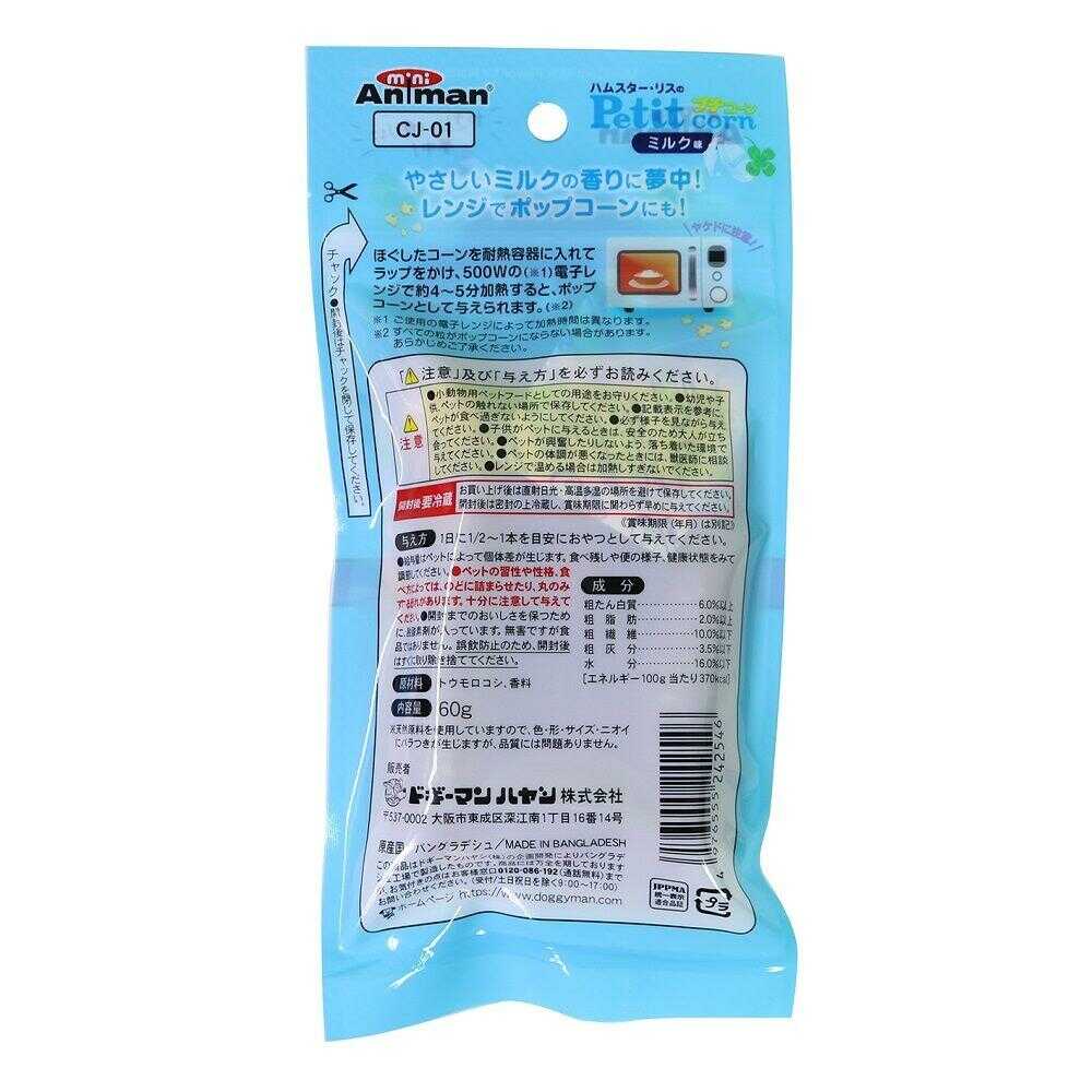 ●かわいいプチサイズのコーンに、やさしいミルクの香りをつけました。大好きな香りにカジカジがとまりません。 ●かじり木のかわりにもなる、適度なかたさ。おいしく食べながら、ストレスの解消や歯の伸び過ぎの防止にも役立ちます。 ●ほぐしたコーンを耐熱容器に入れてラップをかけ、500Wの(※1)電子レンジで約4~5分加熱すると、ポップコーンとして与えられます。(※2) ※1ご使用の電子レンジによって加熱時間は異なります。 ※2すべての粒がポップコーンにならない場合があります。あらかじめご了承ください。