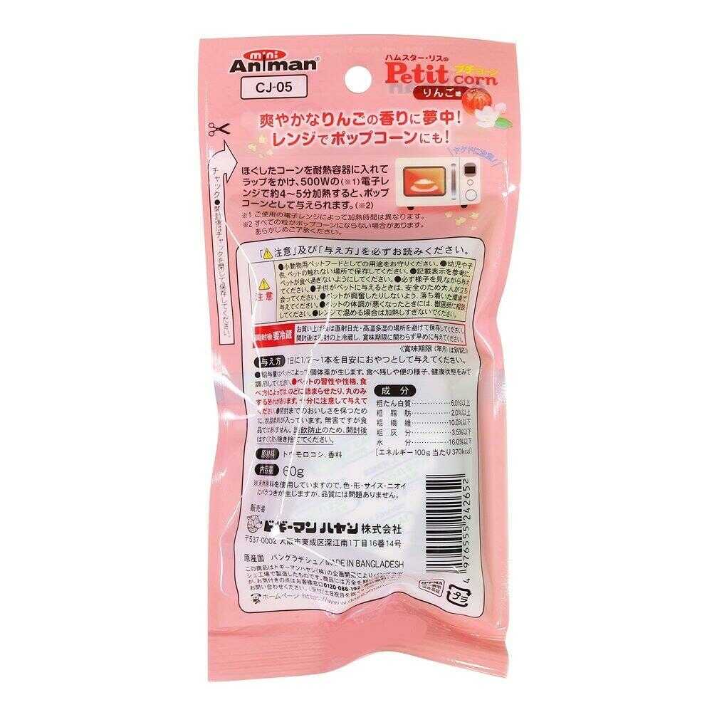 ●かわいいプチサイズのコーンに、爽やかなりんごの香りをつけました。大好きな香りにガジガジがとまりません。 ●かじり木のかわりにもなる、適度なかたさ。おいしく食べながら、ストレスの解消や歯の伸び過ぎの防止にも役立ちます。 ●ほぐしたコーンを耐熱容器に入れてラップをかけ、500Wの(※1)電子レンジで約4~5分加熱すると、ポップコーンとして与えられます。(※2) ※1ご使用の電子レンジによって加熱時間は異なります。 ※2すべての粒がポップコーンにならない場合があります。あらかじめご了承ください。