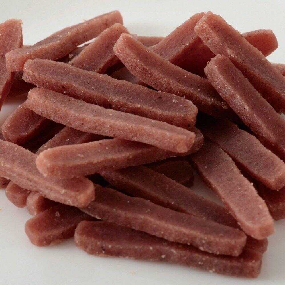 肉類(鶏ササミ、鶏肉)、小麦粉、小麦たん白、糖類、コオロギ粉末、植物油脂、クランベリー果汁パウダー、グリセリン、トレハロース、ソルビトール、ミネラル類(ナトリウム)、着色料(クチナシ)、ポリリン酸ナトリウム、酸化防止剤(ビタミンE)