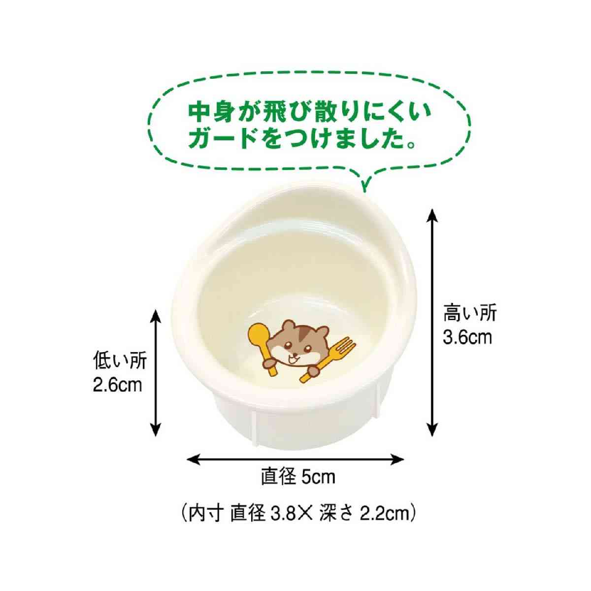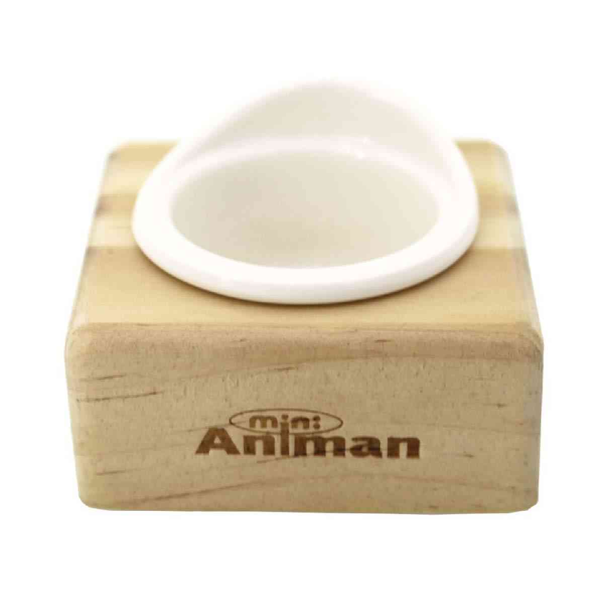 ●シンプルでどんなケージにも合わせやすい無垢の天然木で作ったテーブルと食器。 ●食器の背面に飛び散りにくくするためのガードを設けました。