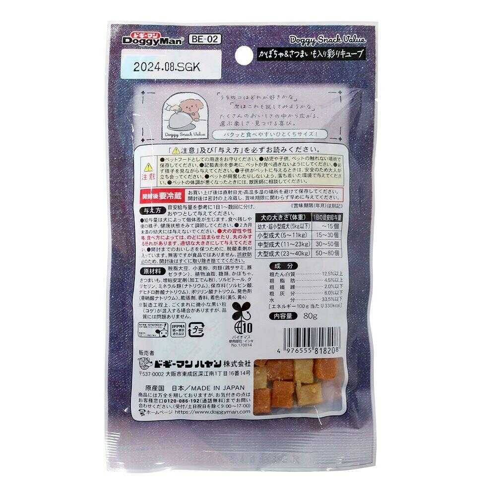 - > ドギーマン かぼちゃ&さつまいも入り彩りキューブ 80g