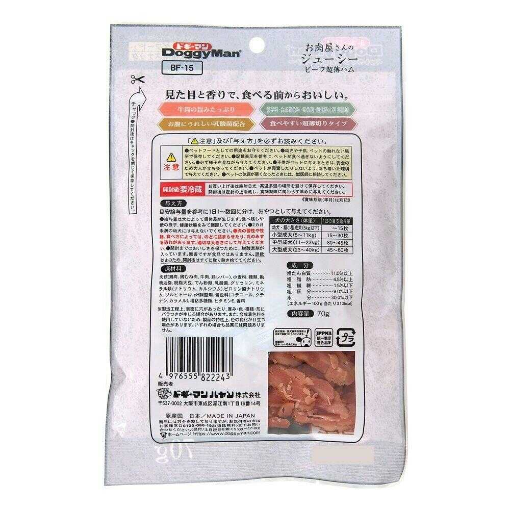 - > ドギーマン お肉屋さんのジューシービーフ超薄ハム 70g