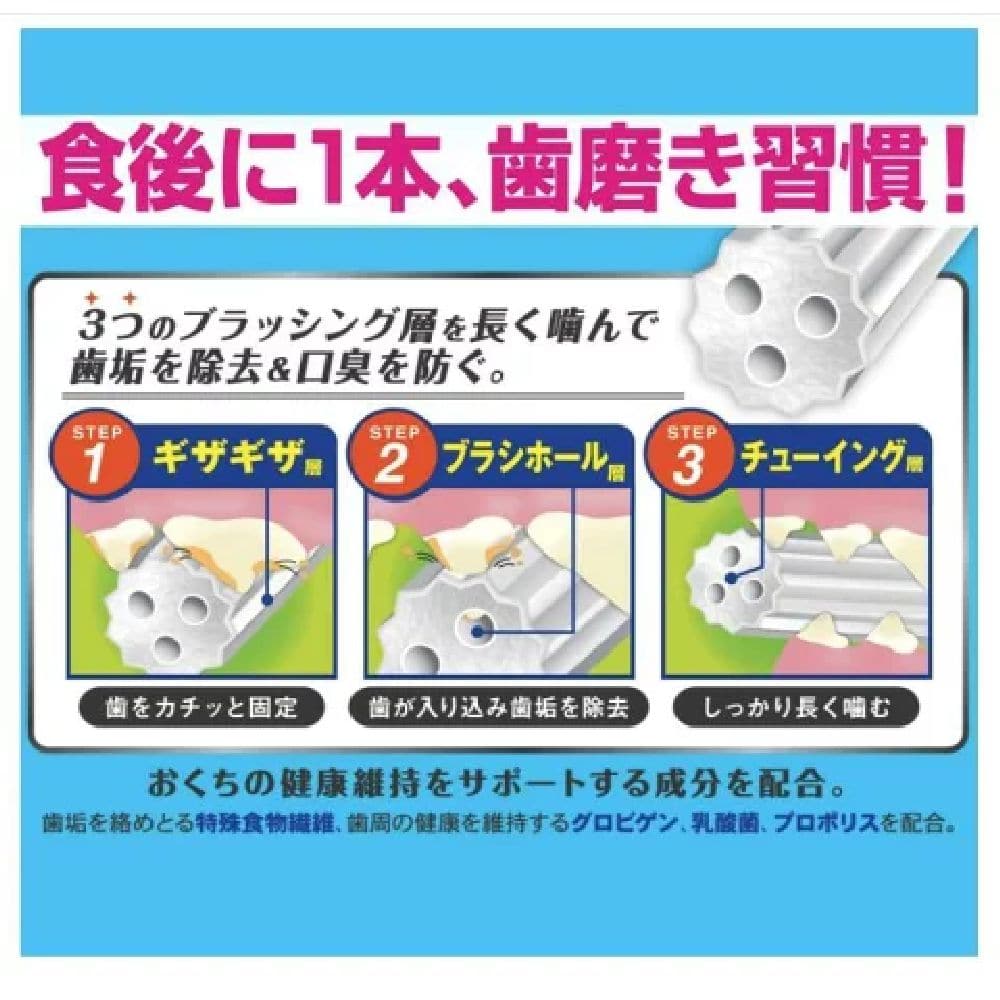獣医師と共同開発したオリジナル3層構造の長持ち歯みがきガム。ミルクの香りと味が食欲をそそる。