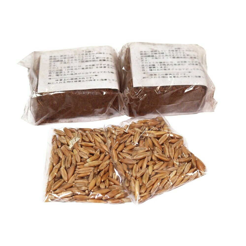 食べて胃の中の毛玉をスッキリさせる、猫の生野菜栽培キット。 種子、培養土、栽培ケース、土をならす用スプーンのセット。 栽培ケースとスプーンは、環境に配慮したバイオマス配合のプラスチックを使用。