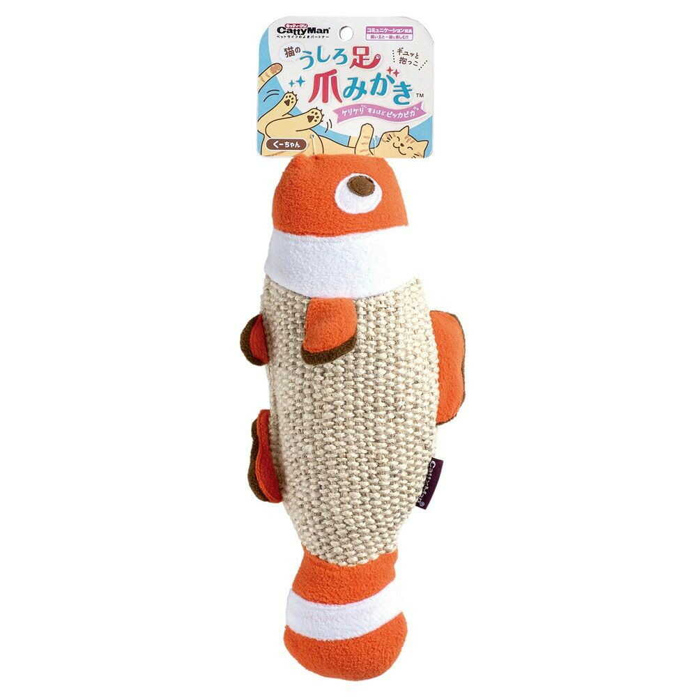 抱っこキックしやすい形状のぬいぐるみに丈夫なジュート麻を使用しました。 ケリケリすると後ろ足の爪も綺麗になるかも! 前足ほどお手入れは必要のない後ろ足の爪ですが、「遊んでいるうちに綺麗になるならいいじゃない」というコンセプトで、ユニークなネーミングのおもちゃです。