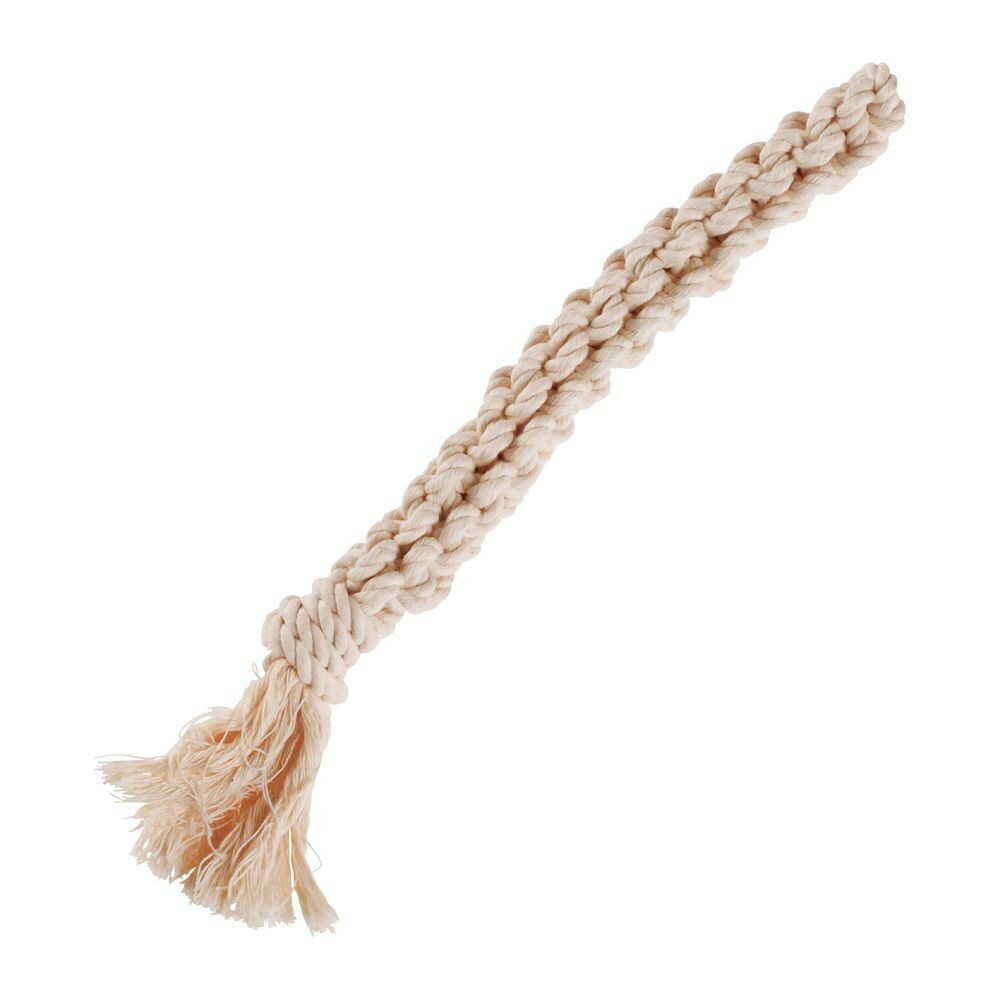 しっかり噛める、コットン100%。 くわえやすい、スティック型のおもちゃ。 コットン糸を編みこんだおもちゃ。 糸をぎゅっと縒ったコットンロープ玩具とちがい、編み目に歯が根元までよく食い込みます。 噛むことで歯の汚れが落ち、歯ぐきも鍛えられます。 <対象:小型犬>