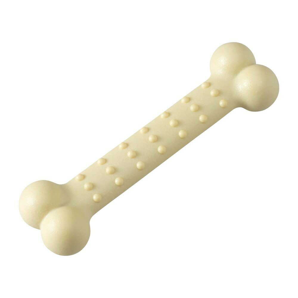 硬さに特化したナイロン製の玩具。 興味を持つのに多少時間がかかる場合もあるようですが、一度遊びだすと夢中になる事も多く、又、執着して噛んでも壊れにくい仕様で長持ち。 表面の質感や凹凸によりいっそう飽きにくくなっています。 噛む事によってストレス解消も見込めます。 一歳未満の幼犬には与えないでください。
