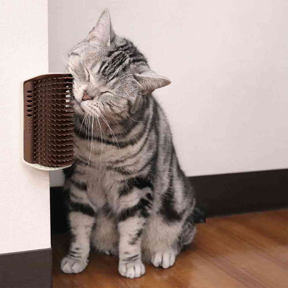 柱や壁の直角やフラットな面など、いろいろな場所に取り付けることができる猫ちゃん用セルフグルーミングブラシ。 インテリアに馴染むカラー。 固定部から外してブラシ部のみでも使える。 両面テープで簡単取り付け。 汚れてもブラシだけ外して簡単お手入れ可能。 マスキングテープ付きで壁を傷つけにくい。 「Nekoリビングキャティーポール」の支柱や家具の脚(直径約30~40mm)などにも取り付け可能。