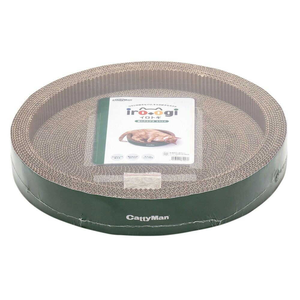カタチと色で選べる、らうんど型の猫のダンボール爪みがき。 目が細かくゴミが出にくく、長く使える。 猫のベッドにもなり上で休むことができる。 キャットニップ付き。