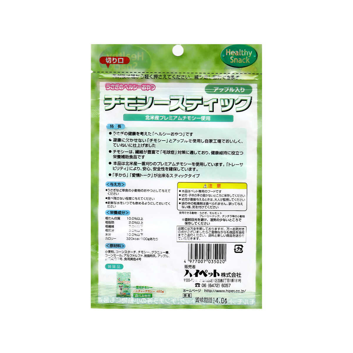 スーパープレミアムチモシー使用の手から与えられるステックタイプのおやつ。