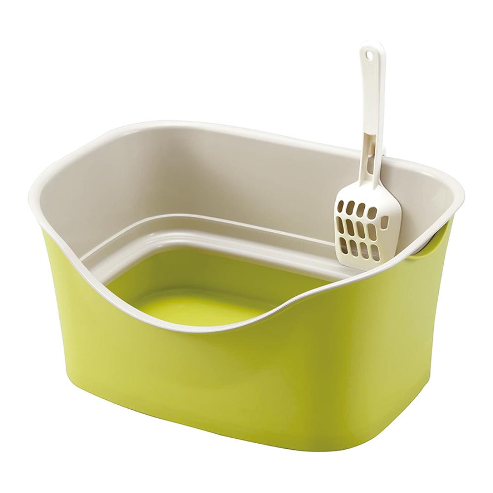 ・オシッコやウンチをする時に足をトイレの壁に乗せる猫ちゃんが多いようです。この猫トイレには内壁の中央付近に足置き場があるので、キレイ好きの猫ちゃんが足を乗っけてトイレが出来るように設計されています。 ・壁部分に引っ掛けられる形状の便利な専用スコップ付き