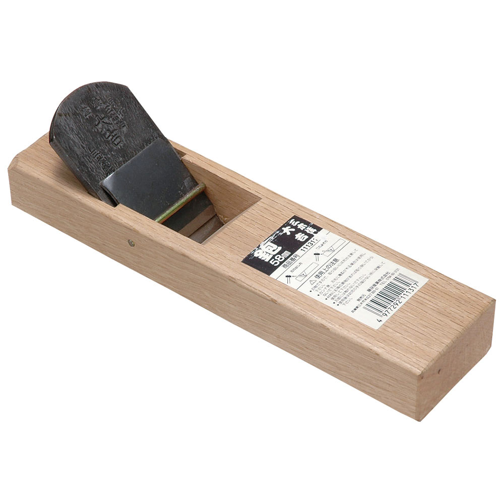 木材の表面を削って加工します。 木材表面の削り加工作業。 刃研ぎ直しのし易い鋼付きの鉋です。 ●刃巾:58mm。 ●鋼付き。