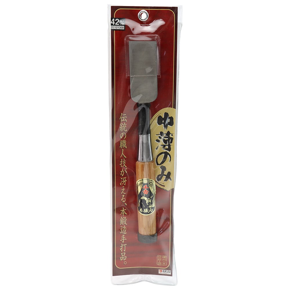伝統の職人技が冴える、本鍛造手打品です。 木材のホゾ穴あけ作業等。 追入れノミでは加工しにくい深い穴にも使いやすいです。 ●刃巾:42mm。 ●本鍛造手打品。