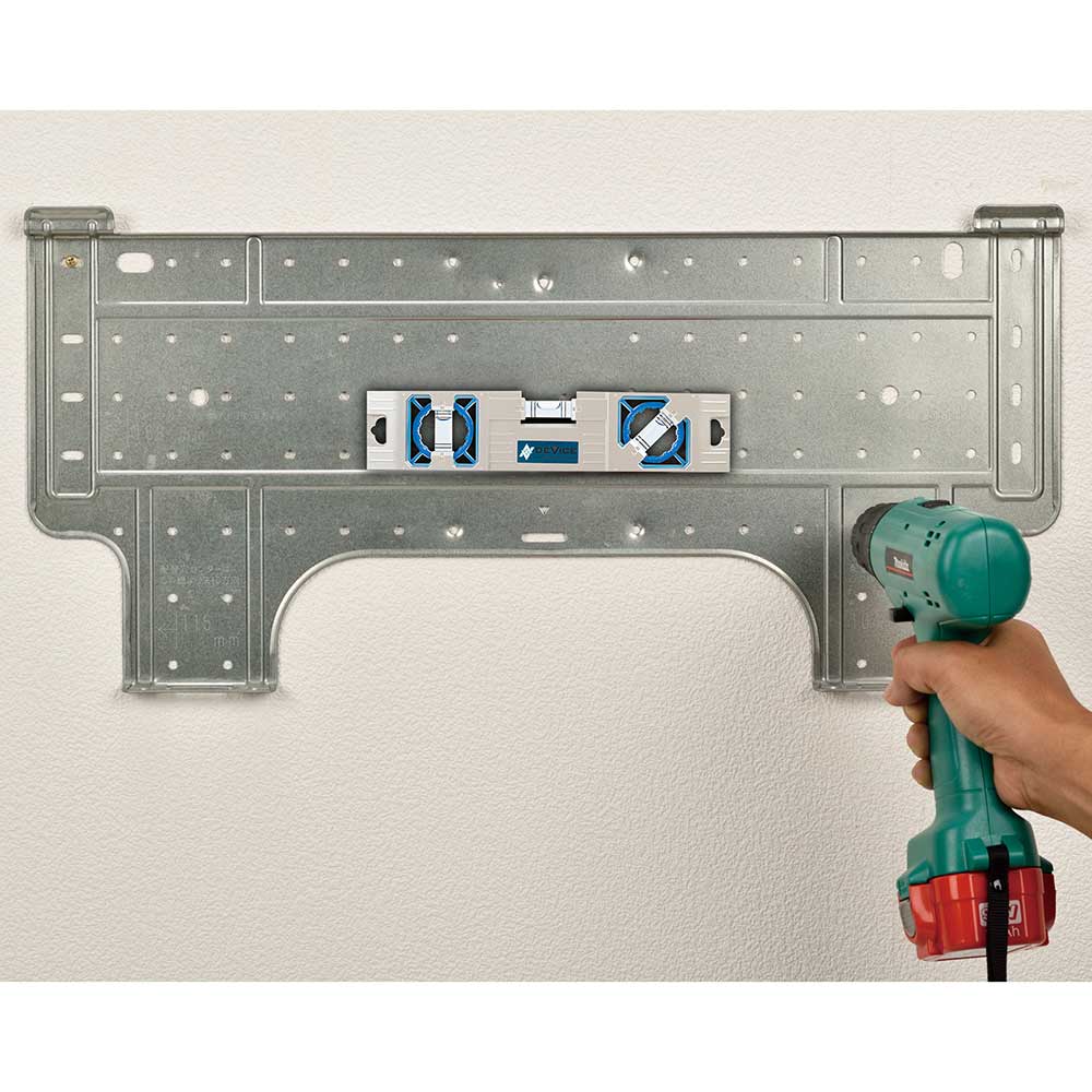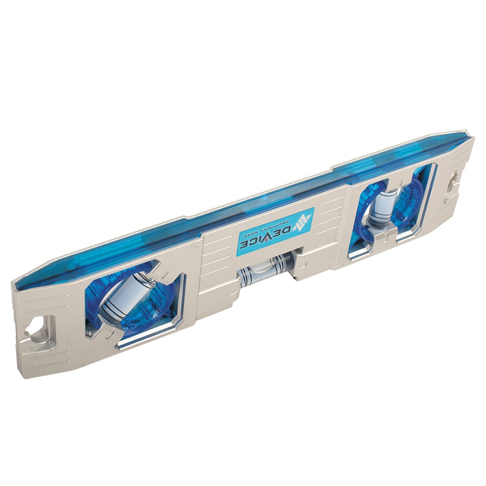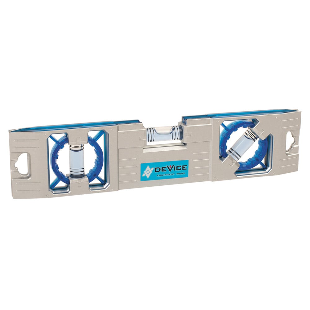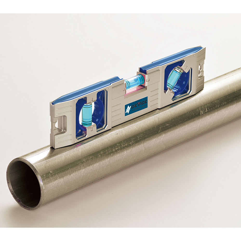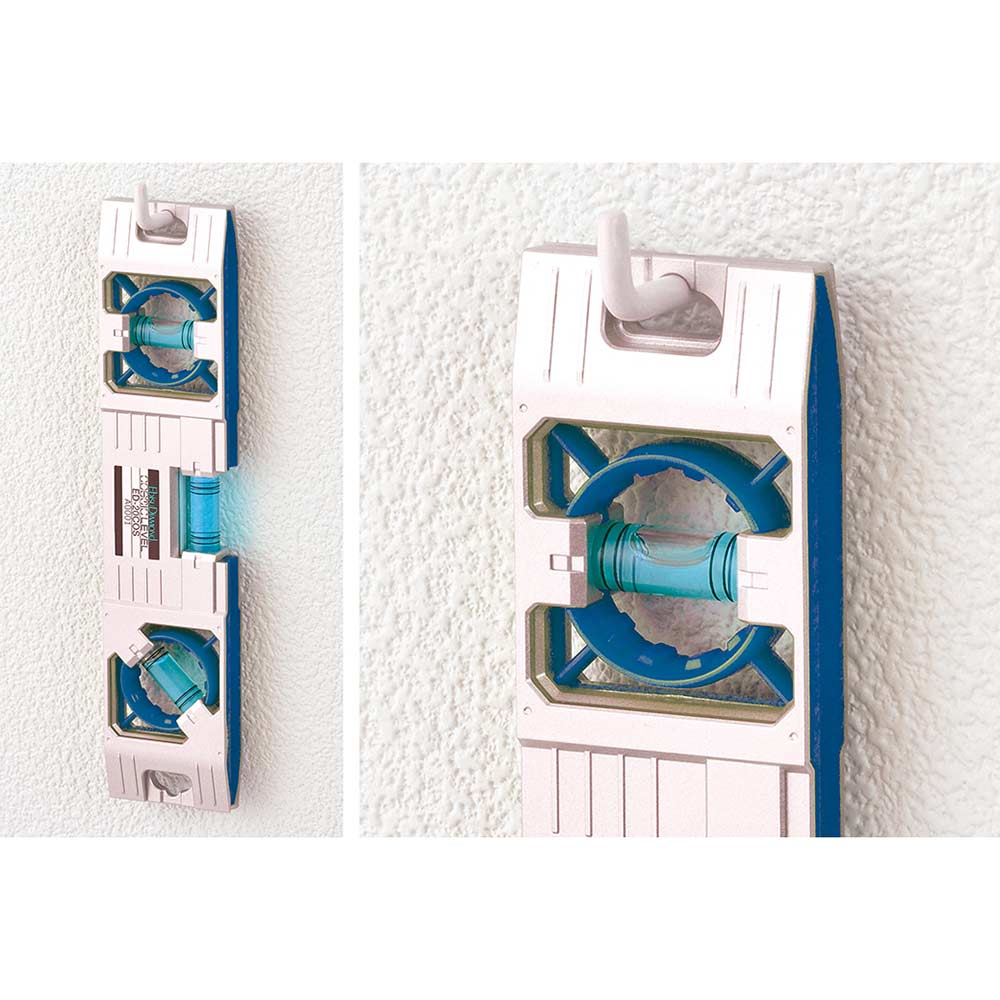 軽量型の水平器です。 水平・垂直・45度の測定。 マグネット内蔵かつ、軽量ボディなので壁面取付金具の水平出しに便利です。 フック穴付きで工具吊りやセフティコードの取り付けが可能です。 45度気泡管付きで法勾配の測定に便利です。 測定基準面V溝付きでパイプ等の測定に便利です。 蓄光付きで、明るい所で光を蓄積して暗い所で数分間発光します。 ●気泡管:4本線アクリル気泡管(水平・垂直・45度)。 ●気泡管色:ブルー。 ●感度:0.50mm/m=0.0286度。 ●精度:±2.50mm/m=±0.1432度以内。