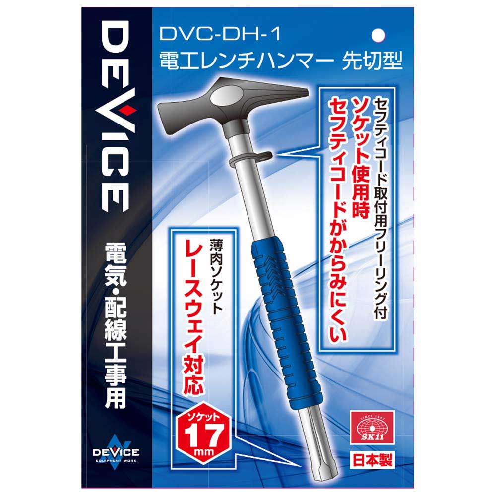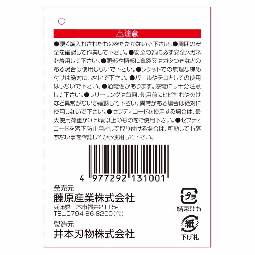 電気・設備作業用のハンマーです。 電気・設備工事等。 セフティコード取付用のフリーリング付で、ソケット使用時セフティコードが絡みにくい仕様になっています。 柄尻には、レースウェイ対応型ソケットを取り付けています。 横打ち可能です。 ●先切型。 ●レースウェイ対応ソケット17mm付。 ●全長:約290mm。