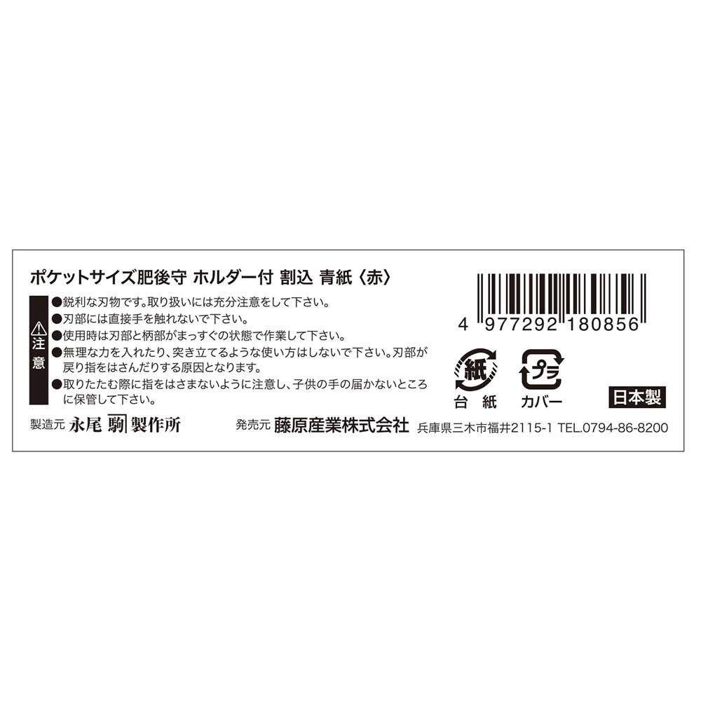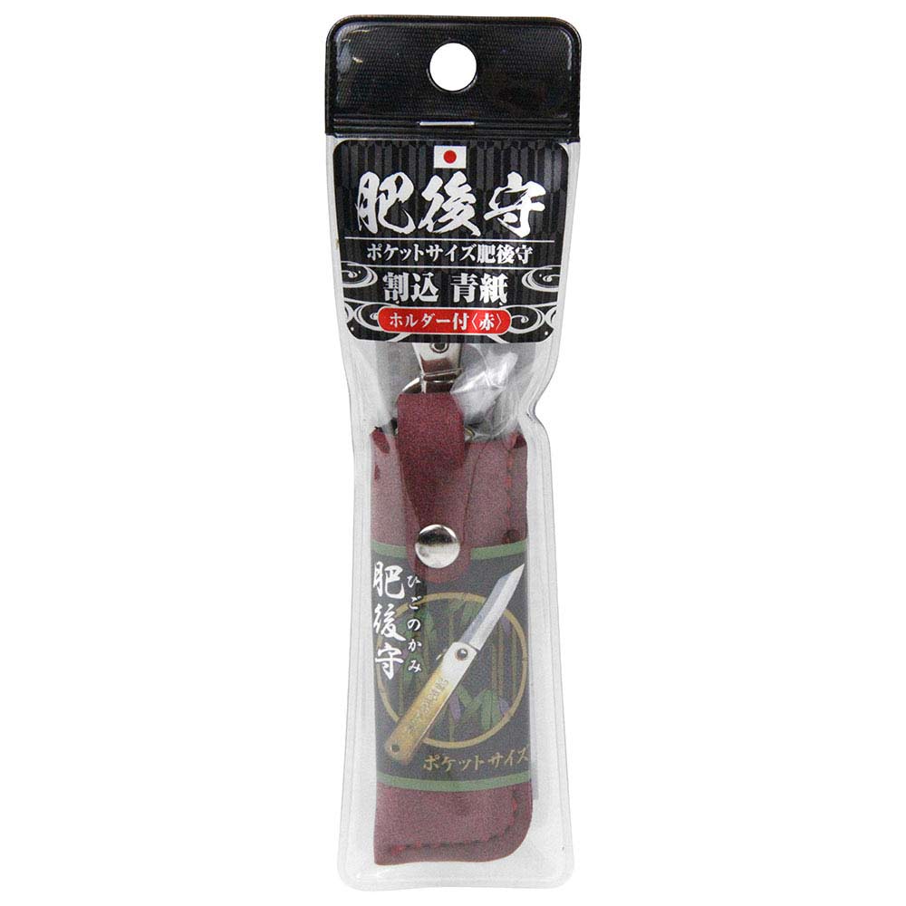 携帯に便利なホルダー付のポケットサイズ肥後守です。 木工・竹などを対象とした小細工用。 刃は安来鋼の青紙を使用した割込タイプです。 刃先が摩耗しても、研ぎ直しながら長く使えます。 ●ホルダーカラー:赤。 ●刃長:約55mm。 ●刃厚:約3mm。 ●ハンドル:約75mm。