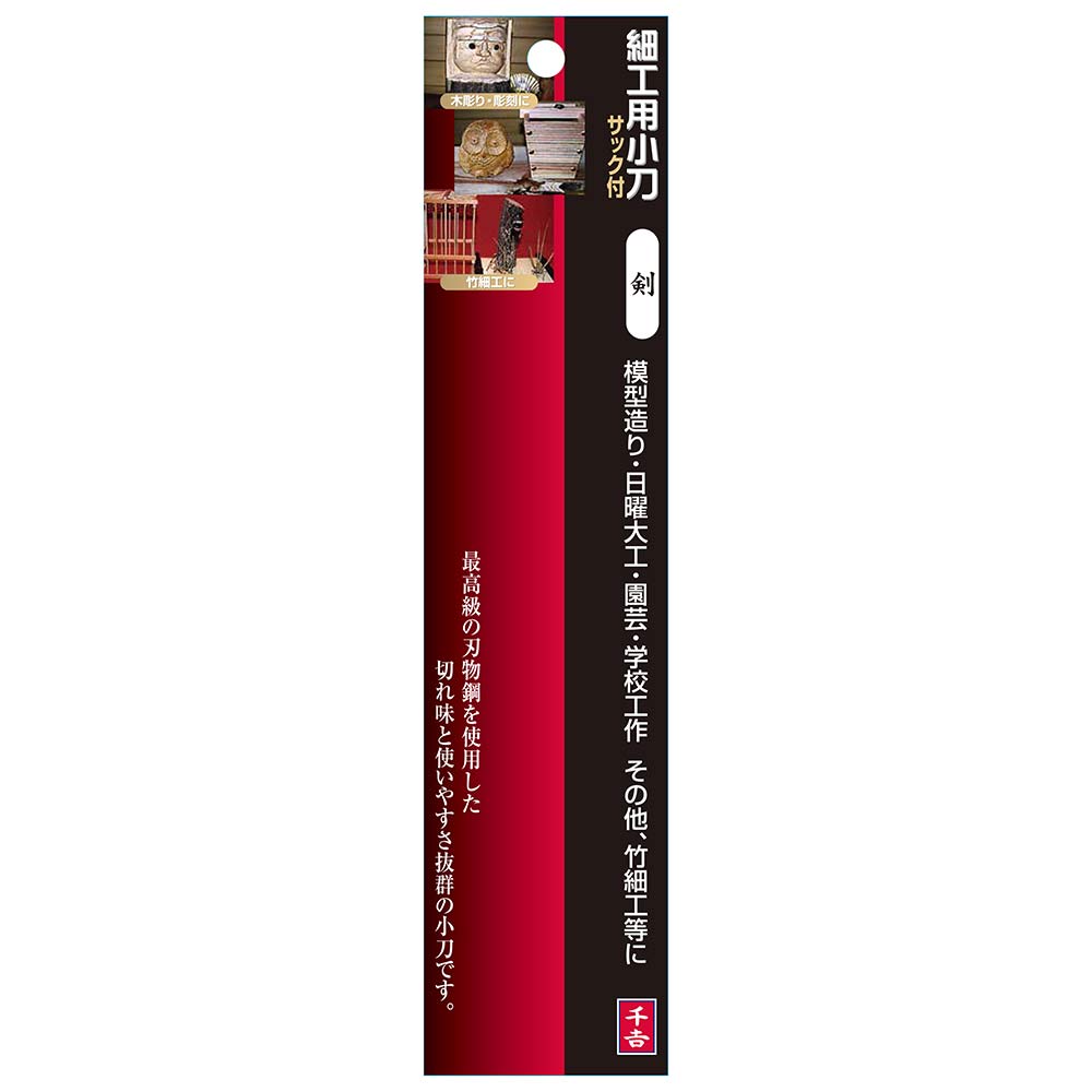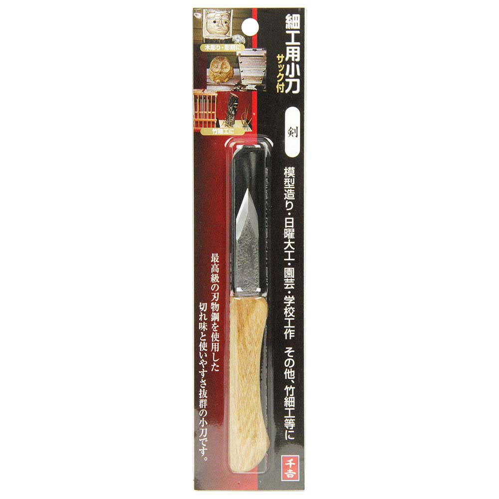 木彫り・彫刻・竹細工、細工作業に最適です。 木彫り、彫刻・竹細工。 使いやすいショートタイプの細工用小刀です。 細工や線引き等、幅広く使えます。 ●刃先形状:剣。 ●サック付。