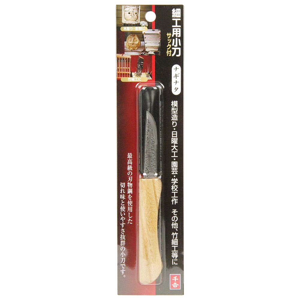 木彫り・彫刻・竹細工、細工作業に最適です。 木彫り、彫刻・竹細工。 使いやすいショートタイプの細工用小刀です。 細工や線引き等、幅広く使えます。 ●刃先形状:ナギナタ。 ●サック付。