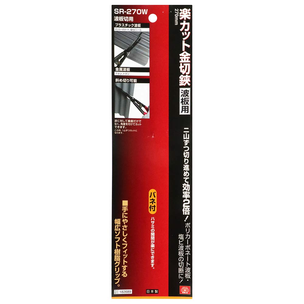 二山ずつ切り進められるので、効率が2倍です。 ポリカーボネート、塩化ビニールなどのプラスチック波板、アタン、トタンなどの金属波板の切断。 波に対して垂直だけでなく、角度を付けてカットできます。 バネ付きで、ハサミの開閉が楽にできます。 カシメ部はボルトを使いスプリング座金の使用により、ナットの締付け調整を自由に変更できます。 ゆるみ止めナットを使用しておりますので、長時間使用している間にナットがゆるむことを防止します。 手にやさしくフィットする幅広ソフト樹脂グリップを採用しています。 ●切断目安:(ポリカーボネート波板・塩化ビニール波板・トタン波板)板厚1.0mmまで。 ●切断目安:(アタン波板)板厚0.5mmまで。 ●刃部焼入硬度:HRC55±1。 ●柄部:アルファゾルコーティング。