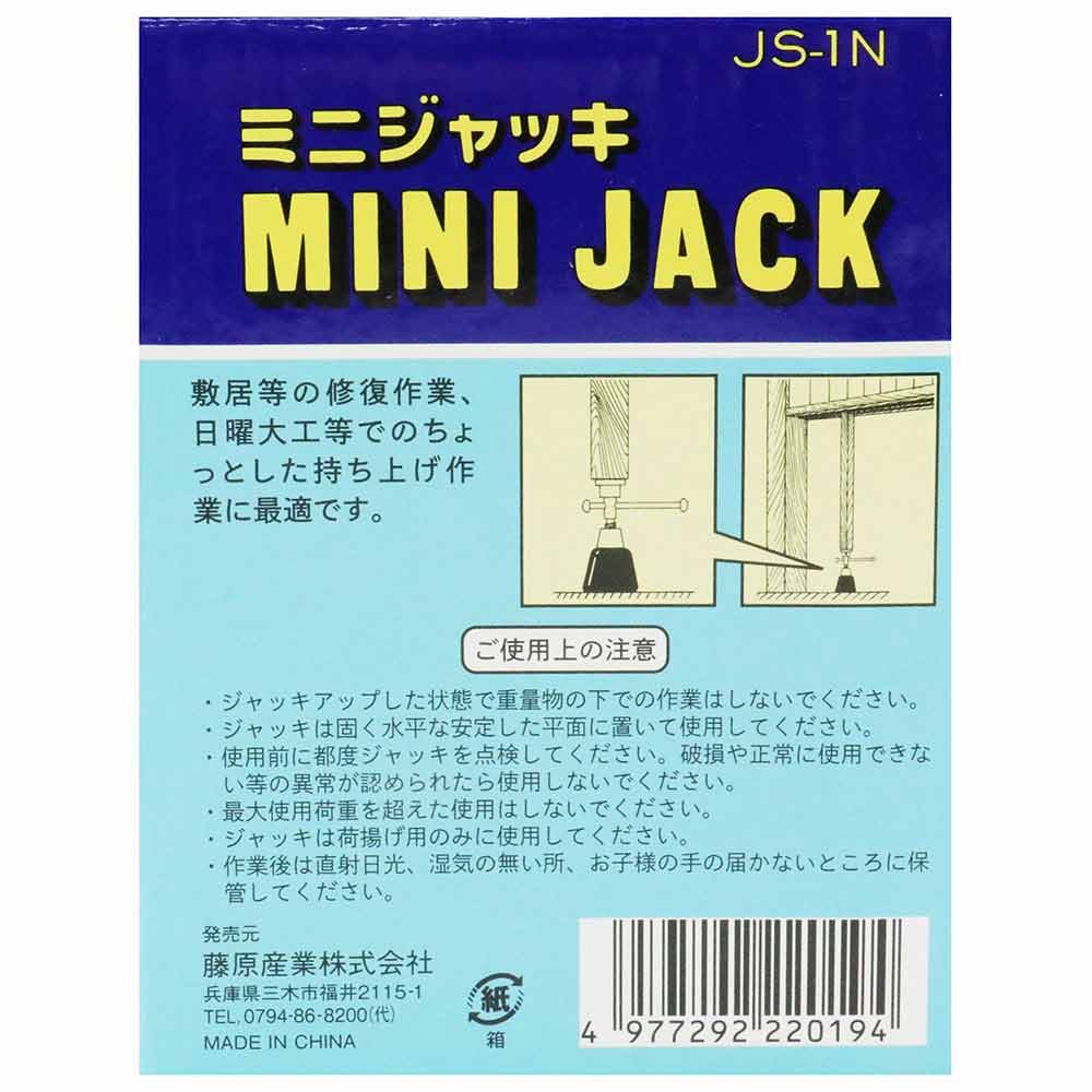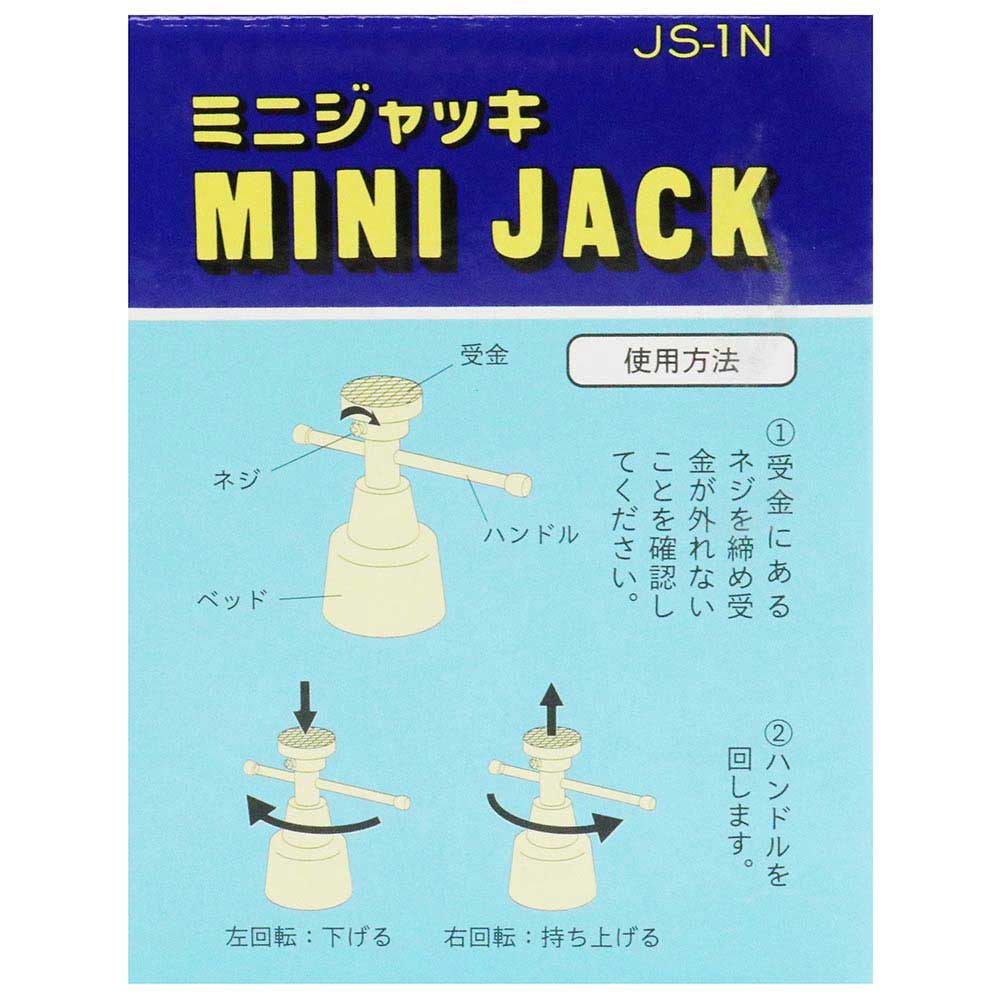 小型・軽量なミニジャッキです。 室内の精密作業・敷居等の修復作業等。 小型・軽量で収納に便利です。 ●最大使用荷重:200kg。 ●最低高さ:115mm。 ●最高高さ:145mm。 ●揚程:30mm。 ●受金寸法:φ36mm。 ●本体重量:440g。
