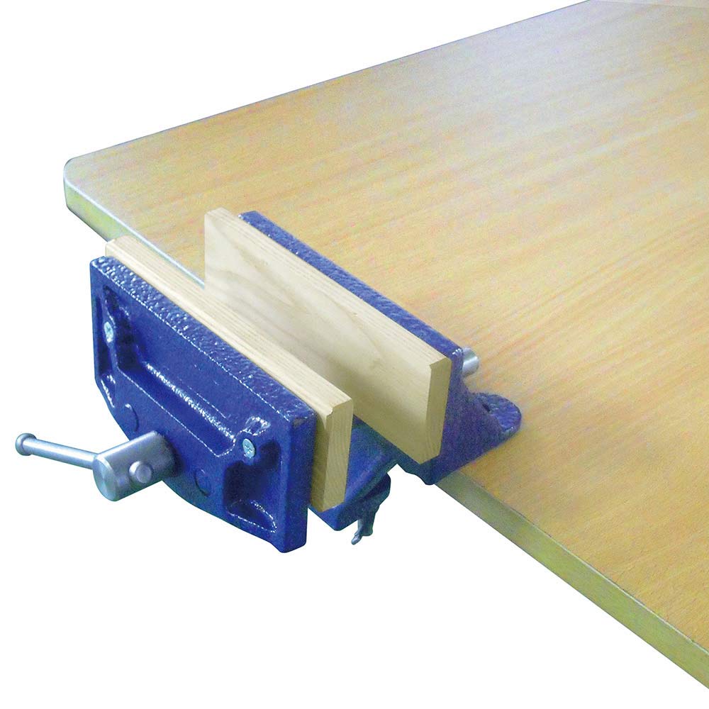 木材を固定して加工作業をするのに最適なバイスです。 木工作業での木材の固定。 クランプ式で取り付けが簡単です(ボルト止めも可能)。 バイス口部分に保護用の板(はさみ板)が付いていますので、材料に傷を付けません。 広い口幅で木工に最適です。 厚さ50mmまでの作業台(テーブル)に取付られます。 ●口幅:165mm。 ●口の開き:80mm。 ●口の深さ:50mm。 ●クランプ幅:最大50mm。 ●重量:3.3kg。 ●梱包内容:本体・はさみ板2枚・A側ねじ(大)2個・B側ねじ(小)2個。