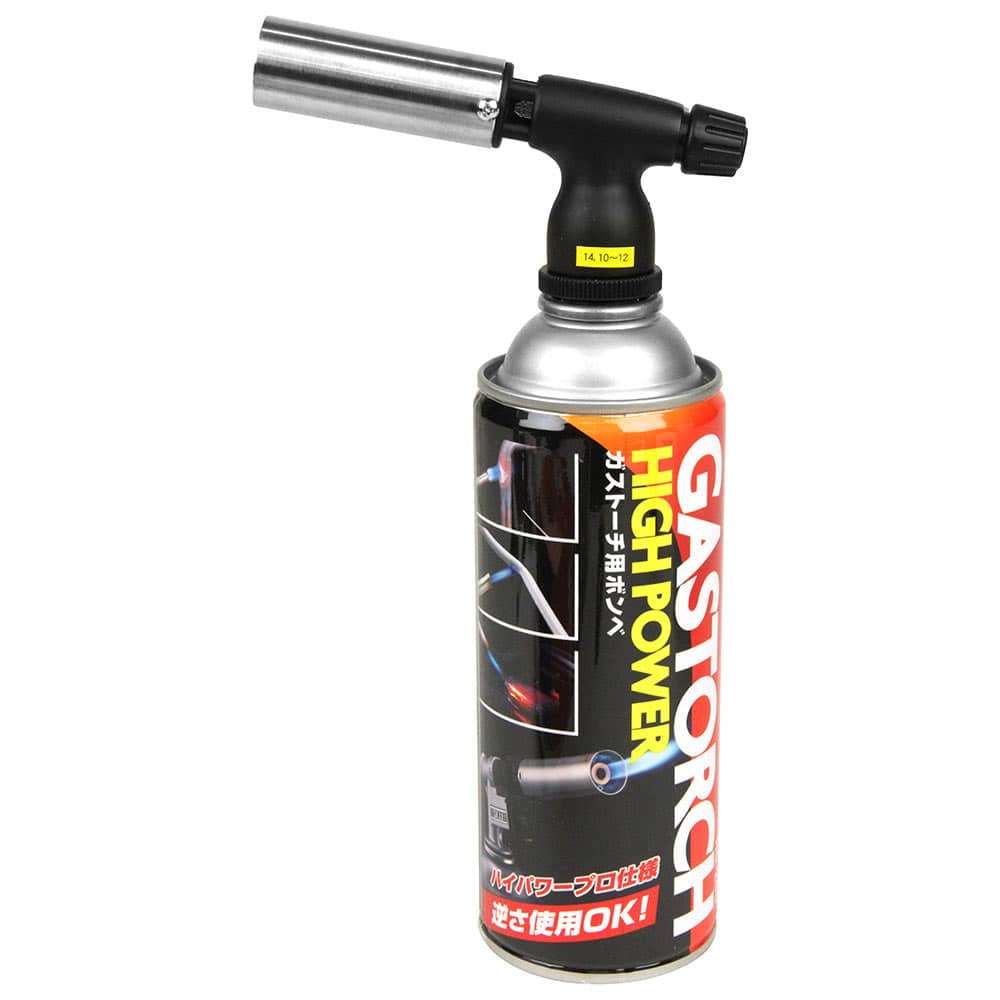 素材を真上から加熱すると、煽り火や熱風などで炎が不安定になります。また本体が温度上昇しますのでご注意ください。使用後はボンベを外し、ほこりが入らないように袋又は箱に入れて保管して下さい。火口付近はすぐ高温になりますので絶対に手を触れないで下さい。子供の手の届かない場所へ保管して下さい。 高地、寒冷地で使用される場合(気温が5度に近い場合)ガスの性質上及び空気との混合等の影響により着火しないことがあります。 明るい場所では炎が短く見えますが、高温の熱風がかなり遠くまで届きますので、周囲の安全に充分注意してください。ご使用後は水で冷やさないでください。精密工具につきお取り扱いにご注意ください。