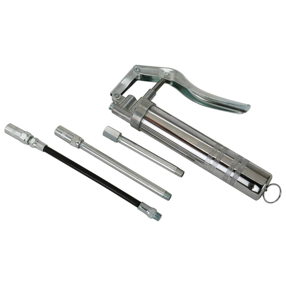 手詰め・カートリッジグリース兼用タイプのグリースガンです。 農機具や建設機械等へのグリースの注入。 片手で操作が出来るので狭い場所での注油作業に最適です。 ストレートノズルとフレキシブルホースの2種類が付いているので、いろいろな場所への注油が可能です。 カートリッジグリース80gを使えば、装着簡単で手が汚れません。 ●全長:約240mm。 ●重量:670g。 ●油槽径:約38mm。 ●容量:カートリッジ80cc・手詰め120cc。 ●最大圧力:23Mpa。 ●1回吐出量:約0.5g。 ●付属品:ストレートノズル・フレキシブルホース・ノズル用中間パイプ。