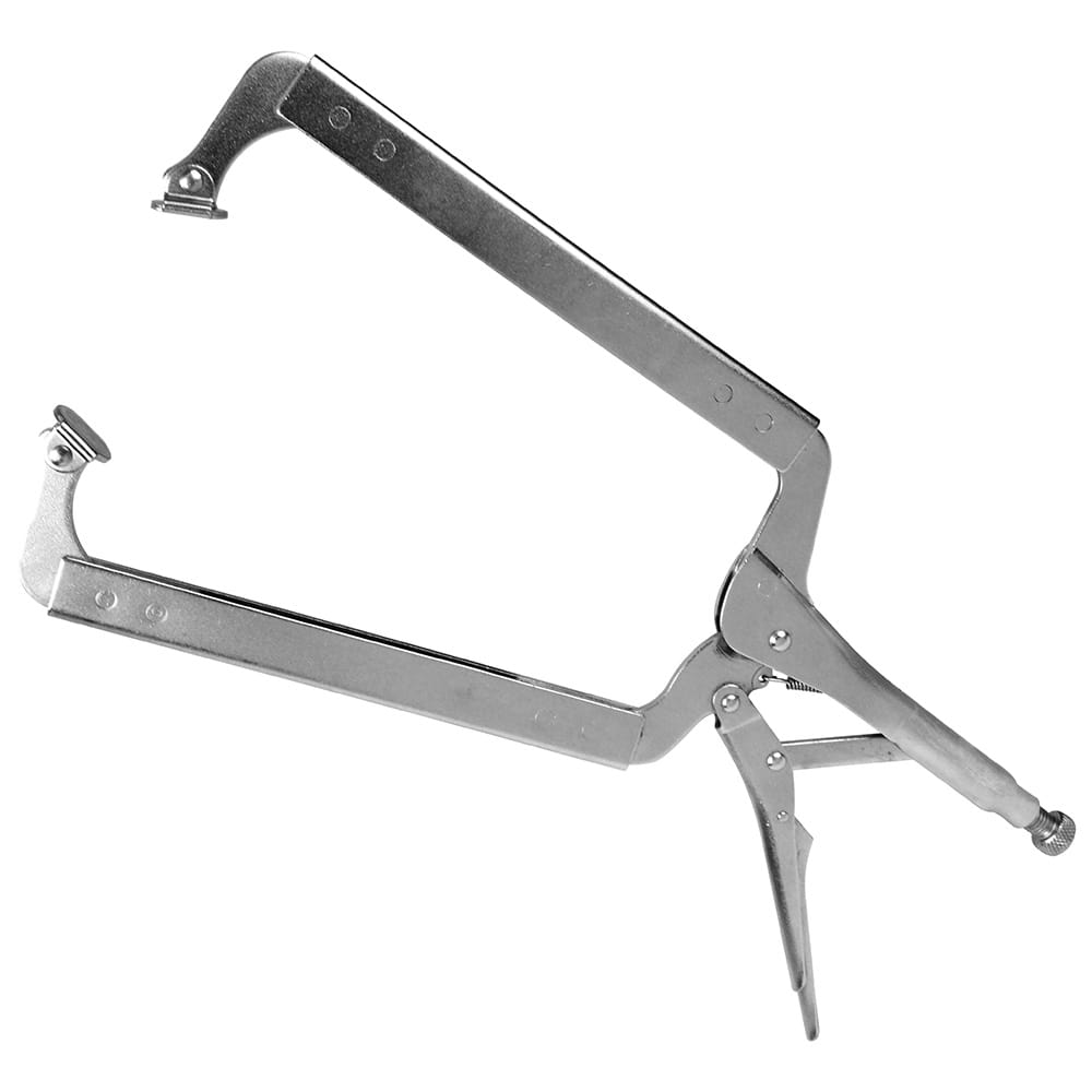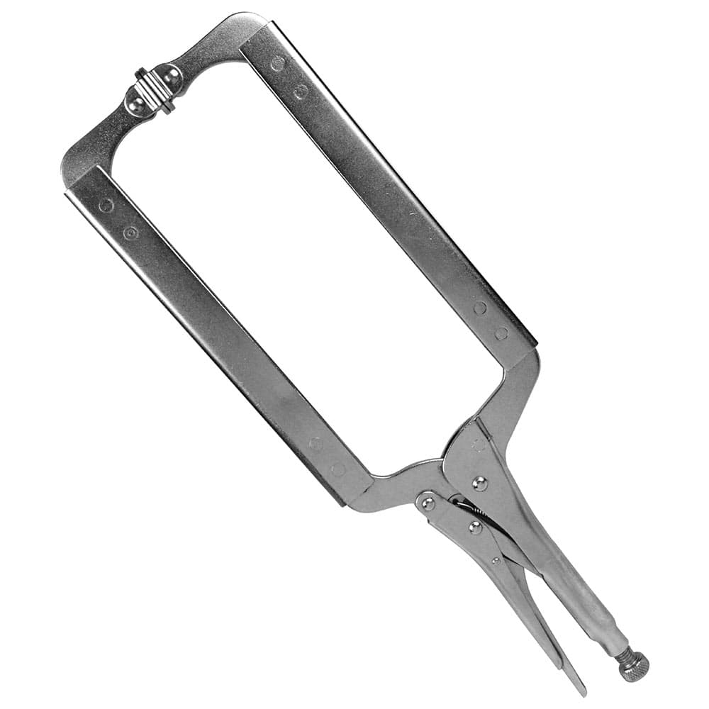 先端可動式なので広い範囲で平行クランプできます。 木工作業、金工作業。 先端が自在金具付きのため、角度のある対象物もクランプできます。 可動式パットで角度のある物の固定に便利です。 ふところが大きく、深い所にまで届きます。 ●全長:約450mm。 ●口開き:180mm。 ●ふところ深さ:245mm。 ●可動パット付。