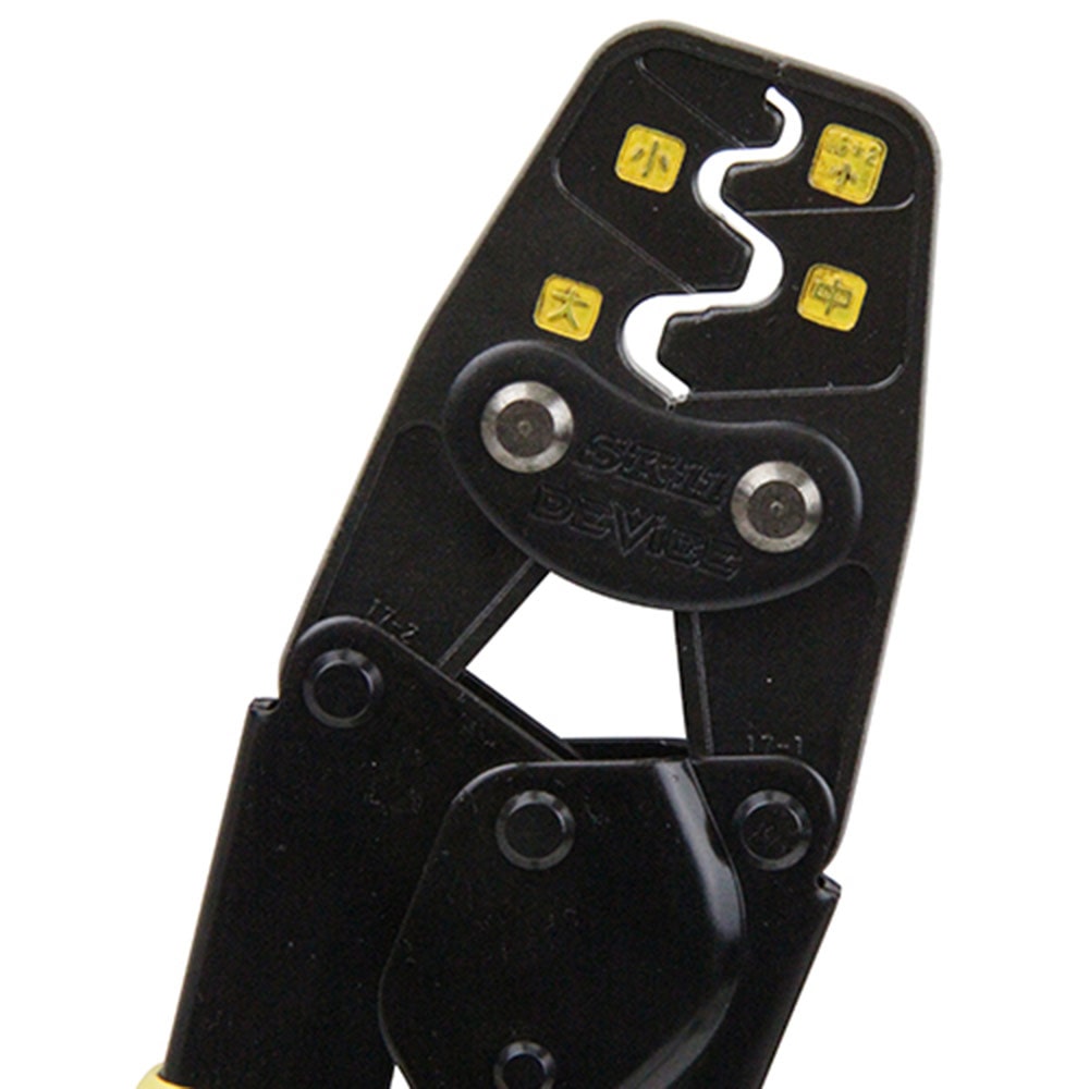 電気工事士技能試験必携工具です。 リングスリーブE用。 従来品と比べグリップ幅がスリムで片手作業が容易です。 成形確認機構で圧着不良防止します。 確実に圧着できれば機構が解除されハンドルが開きます。 端子の仮押さえも片手でラクラクです。 圧着完了の端子・スリーブには圧着マークが刻印されます。 ●使用範囲:小(1.6×2)、小、中、大。 ●全長:277mm。 ●重量:430g。 ●JIS規格品。