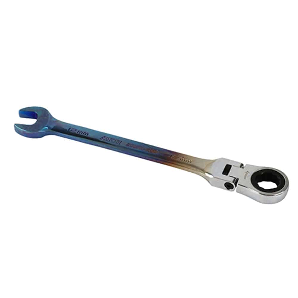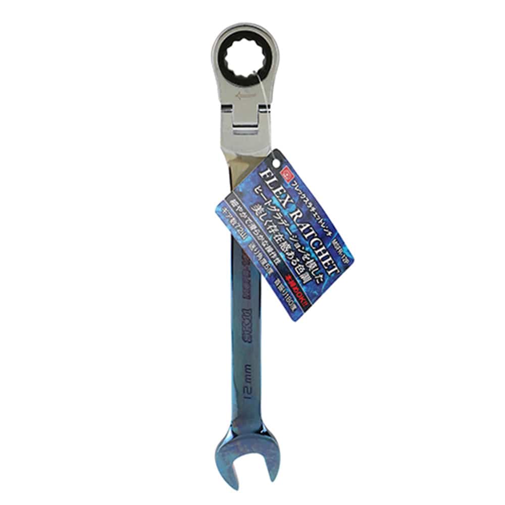 細やかで滑らかな操作性のフレックスラチェットレンチです。 六角ボルト・ナットの締付け、緩め作業。 ヒートグラデーションを模した、美しく存在感のある色調です。 首振り機構は0~180度の任意の角度に設定でき、障害物を避けての作業が可能です。 本締めが可能です。 ●サイズ:12mm。 ●ギア数:72山(送り角度5度)。 ●首振り機構付。 ●使用トルク:ラチェット91N・m以下、スパナ49N・m以下。