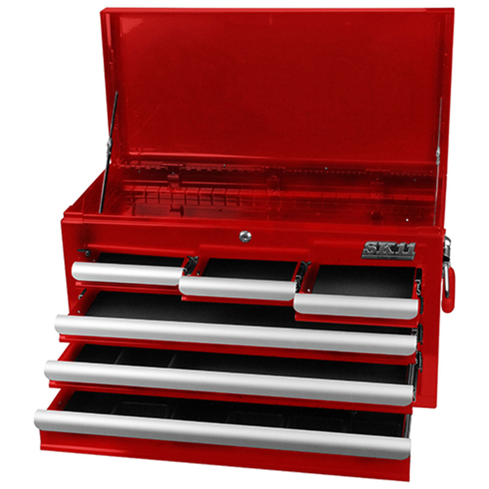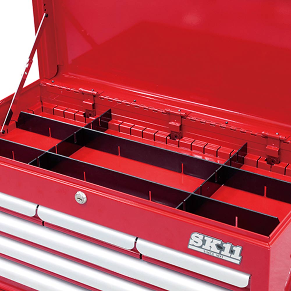 剛性・精度に優れた、プロも納得の確かな品質です。 道工具・小物類の収納保管・整理。 引出しは、荷重時もスムーズで静かな開閉が可能なベアリングスライドレールを採用しています。 ローラーキャビネットとの組み合わせに最適で、収納力は抜群です。 仕切り板をトップ部に設置し、スペースを区切ることで収納性・利便性が向上しました。 引き出しの全段にEVAマットが付いています。 引出しを全段閉めてトップカバーを閉じると、全段引き出しのロックが可能です。 ●本体サイズ:幅660×奥行307×高さ475mm。 ●引出し内寸:幅170×奥行275×高さ50mm×3。 ●引出し内寸:幅569×奥行275×高さ50mm×2。 ●重量:22kg。 ●引出し内寸:幅569×奥行275×高さ75mm×1。