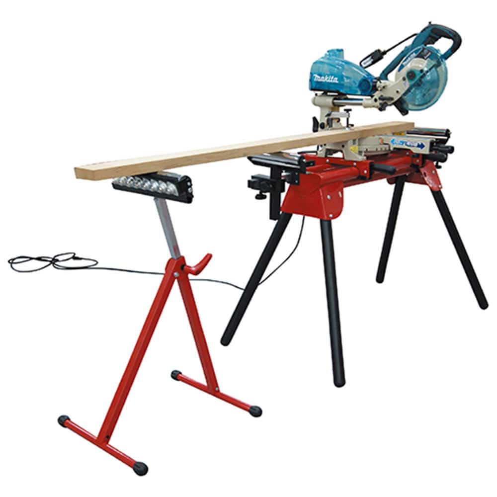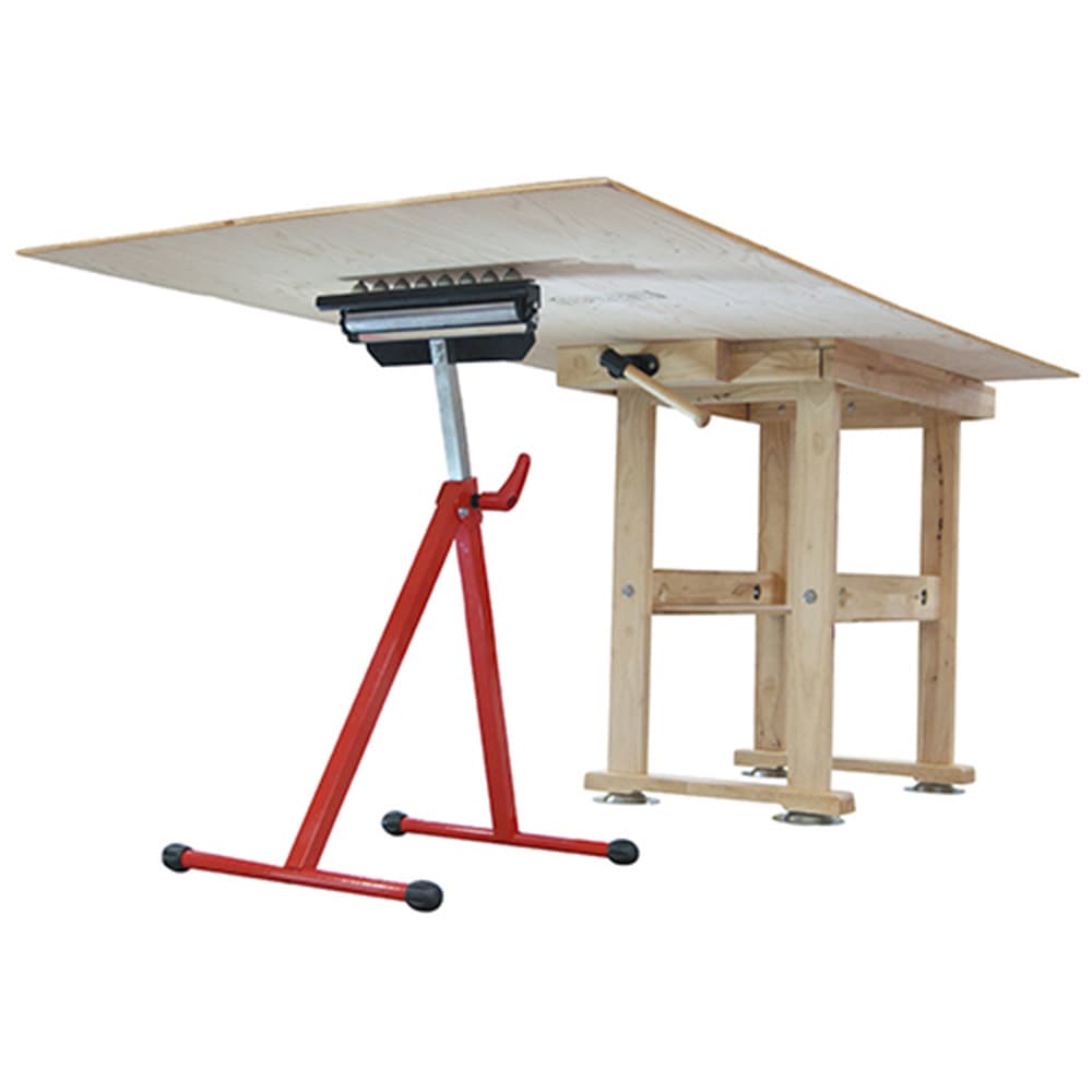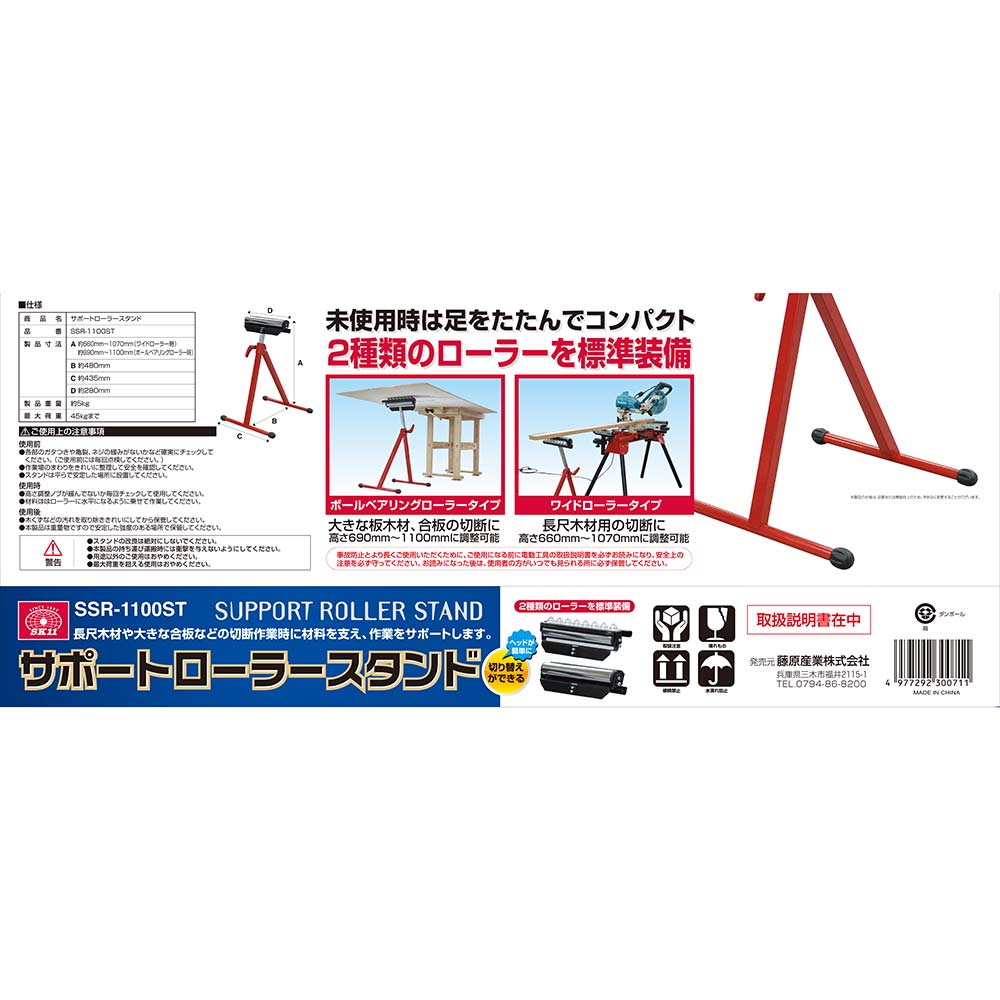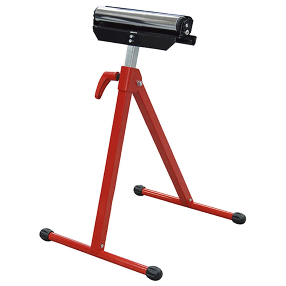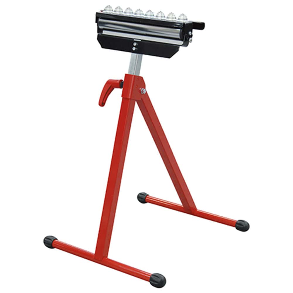 長尺木材や大きな合板などの切断作業時に材料を支え、作業をサポートします。 板木材や合板、長尺木材の切断作業の補助。 2種類のローラーを標準装備しています。 未使用時は足をたたんでコンパクトになるため持ち運びにもべんりです。 ●寸法(ワイドローラー時の高さ):660mm~1070mm。 ●寸法(ボールベアリングローラー時の高さ):690mm~1100mm。 ●寸法(ローラー部の幅):約280mm。 ●重量:5kg。 ●最大荷重:45kg。