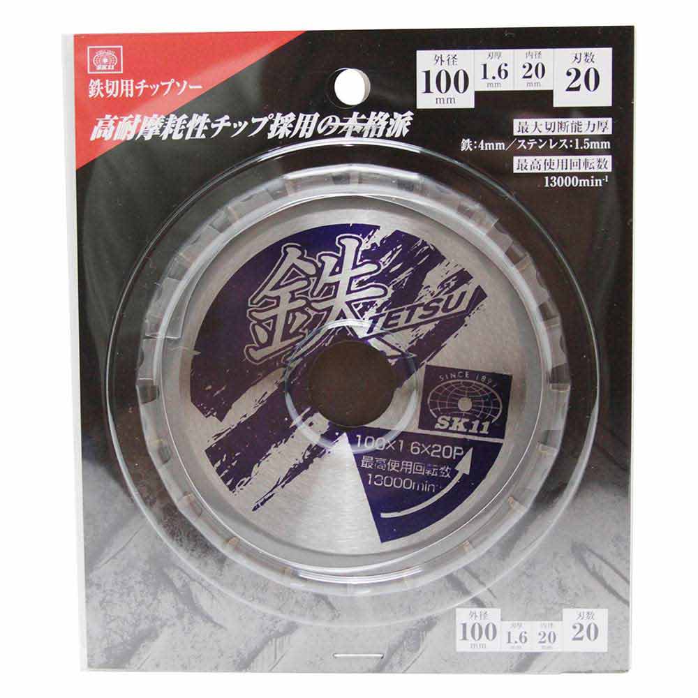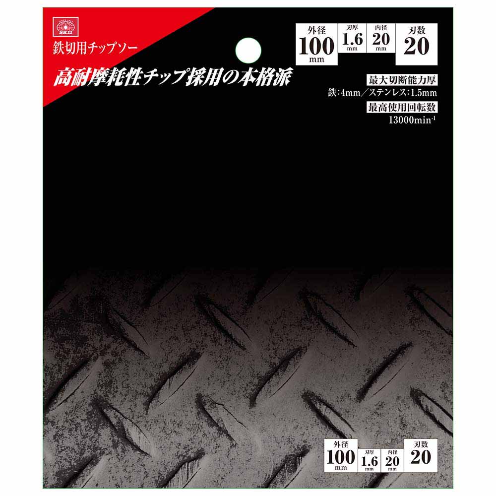高耐摩耗性チップ採用の本格派鉄切用チップソーです。 アングル鋼・鉄筋・チャンネル鋼・軽天バー・ハンガーレール等の切断作業。 適切な台金の熱処理と独自の刃先設計により、台金クラックや刃欠けが少ない安全設計です。 高耐摩耗性チップ採用と卓越した研磨角度で切れ味、耐久性共に優れています。 ●外径:100mm。 ●刃厚:1.6mm。 ●内径:20mm。 ●刃数:20。 ●最高使用回転数:13000min-1。 ●最大切断能力:鉄4.0mm・ステン1.5mm。