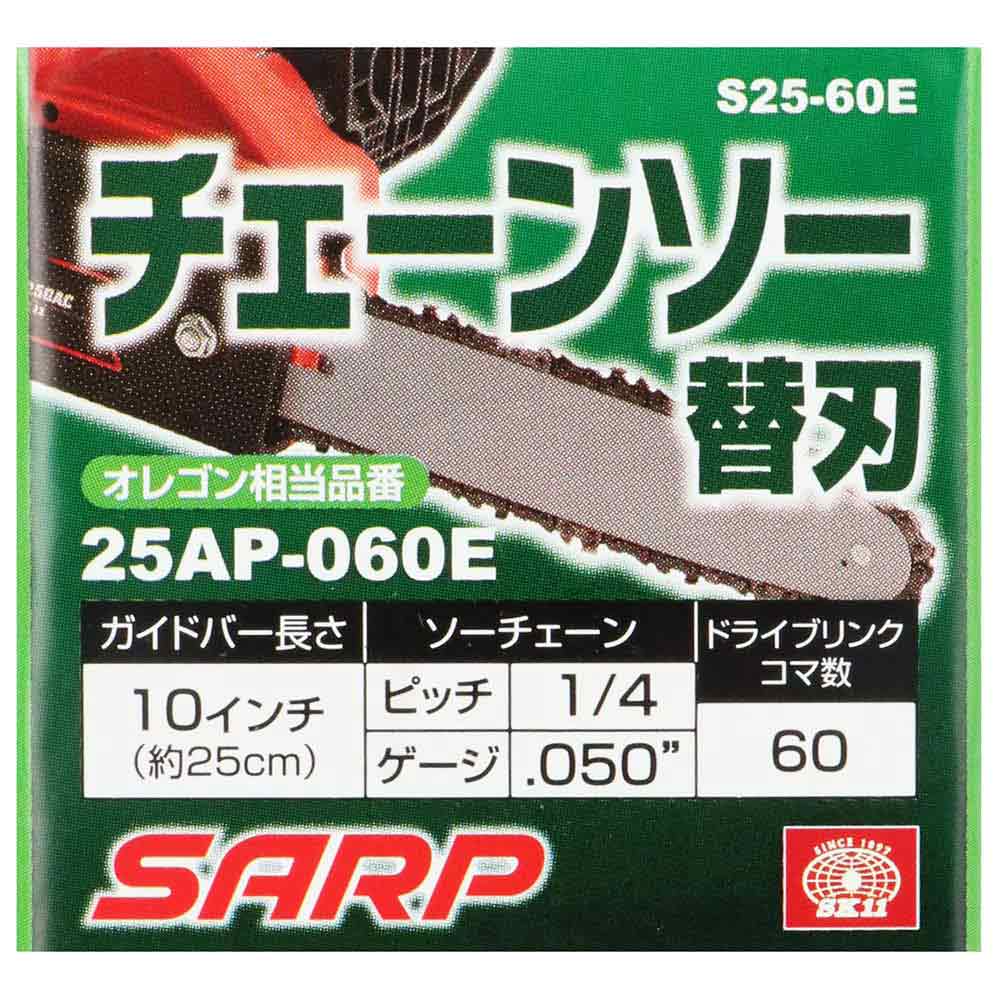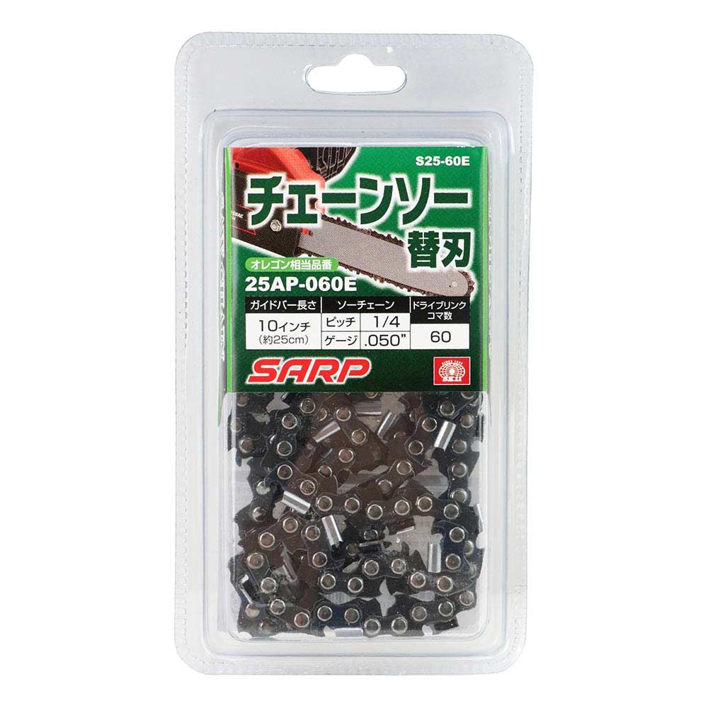 高品質チェーンソー用替え刃です。 エンジンや電動のチェーンソーの交換用の替え刃。 樹木の伐採用替え刃です。 ●相当オレゴン品番:25AP-060E。 ●ガイドバー長さ:10インチ(25cm)。 ●ソーチェーンピッチ:1/4。 ●ソーチェーンゲージ:.050。 ●ドライブリンクコマ数:60。