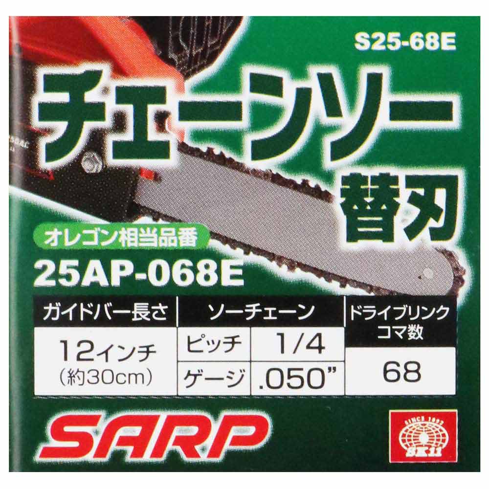 高品質チェーンソー用替え刃です。 エンジンや電動のチェーンソーの交換用の替え刃。 樹木の伐採用替え刃です。 ●相当オレゴン品番:25AP-068E。 ●ガイドバー長さ:12インチ(30cm)。 ●ソーチェーンピッチ:1/4。 ●ソーチェーンゲージ:.050。 ●ドライブリンクコマ数:68。