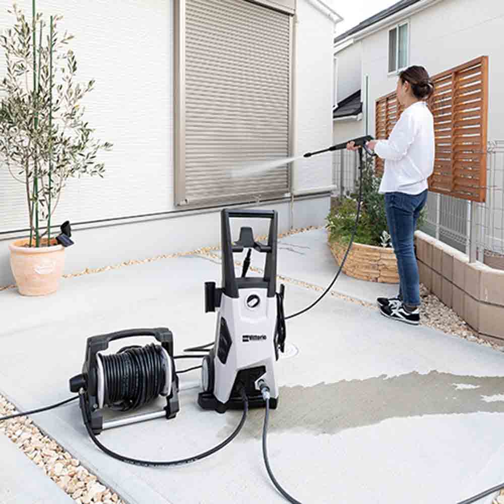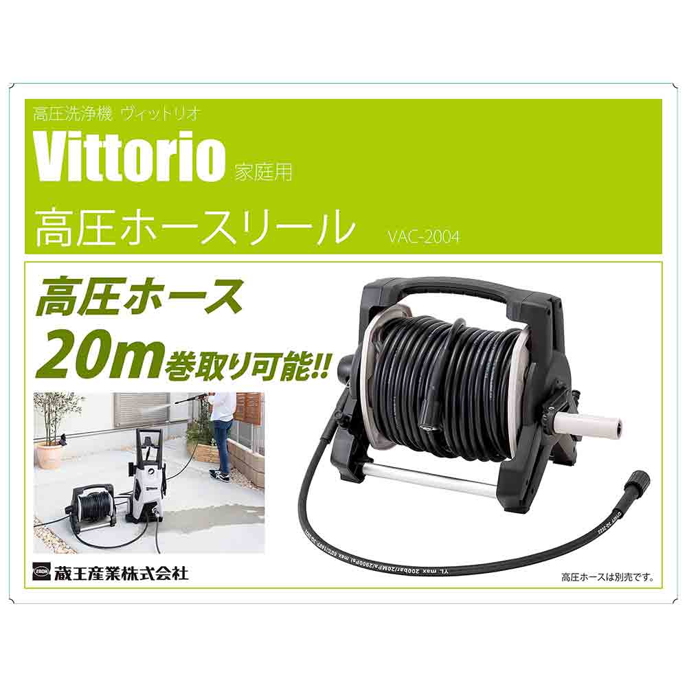 高圧ホース用のリールです。 高圧ホースリールの収納に。 高圧ホースを20メートル巻けます。 ●高圧ホース別売。