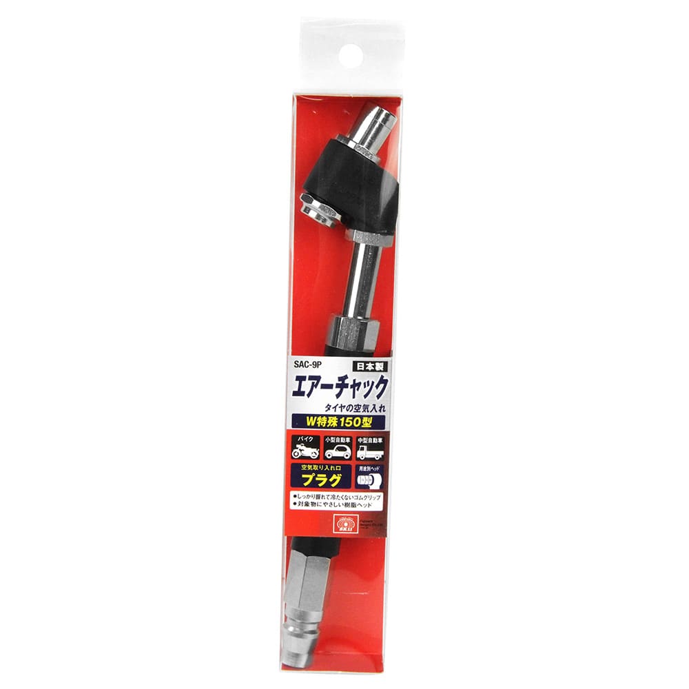 しっかり握れて冷たくないゴムグリップを採用したエアーチャックです。 バイク、小型・中型自動車用タイヤの空気入れ。 対象物にやさしい樹脂ヘッドです。 ダブルタイヤおよび特殊ホイールまで対応のエアチャックです。 一目で分かる用途別ヘッドです(ショート/自転車・ミドル/自動車・ロング/自動車特殊)。 ●適応車種:小型~中型自動車・バイク。 ●対応バルブ:米式バルブ。 ●空気取入口:汎用ワンタッチプラグ。 ●最高使用圧力:0.5MPa。 ●常用圧力:0.4MPa。 ●適応形状:ダブルタイヤ・特殊ホイール対応型。 ●サイズ:150mm。