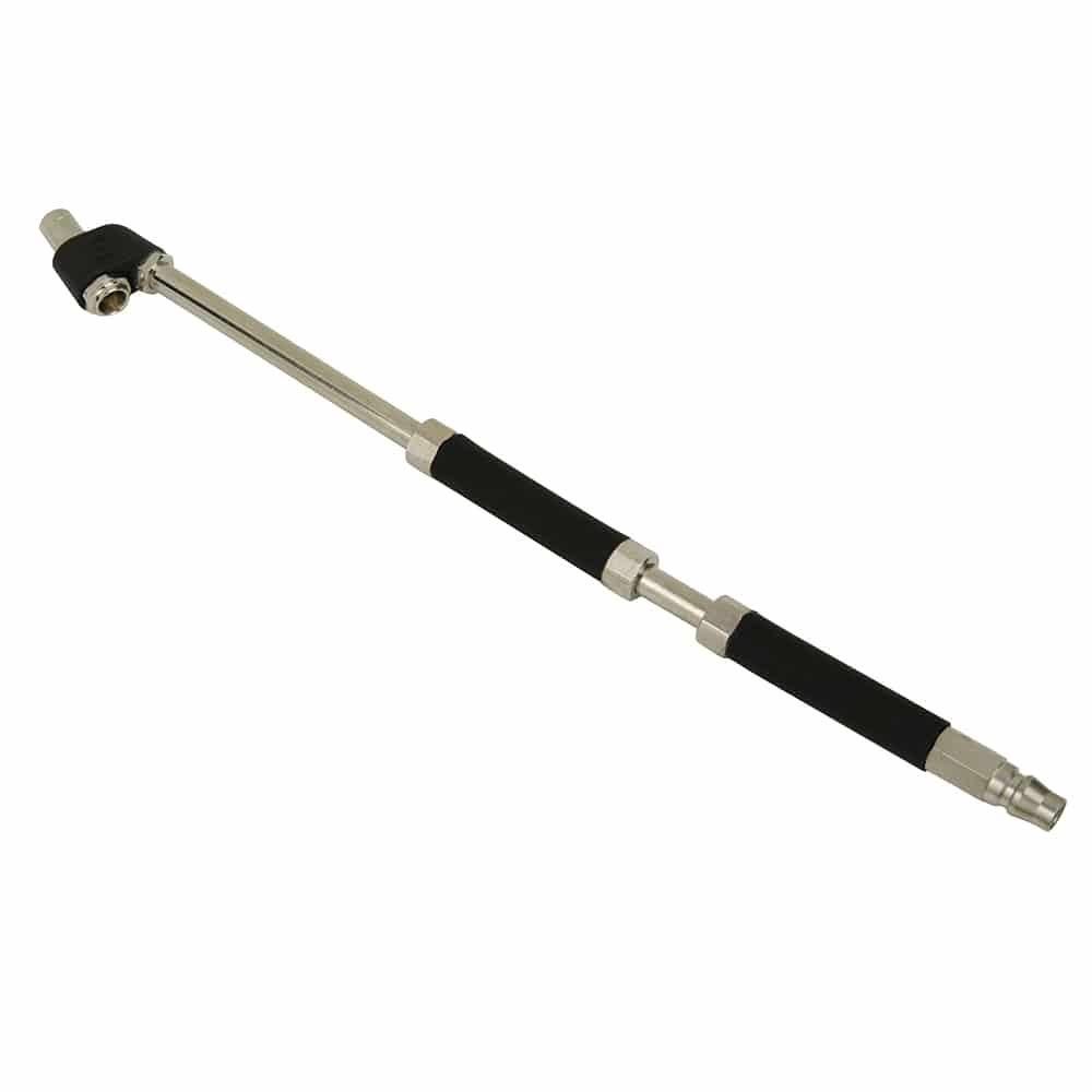 しっかり握れて冷たくないゴムグリップを採用したエアーチャックです。 バイク、小型・中型・大型自動車用タイヤの空気入れ。 対象物にやさしい樹脂ヘッドです。 大型自動車、ダブルタイヤ、特殊ホイールまで対応のエアチャックです。 一目で分かる用途別ヘッドです(ショート/自転車・ミドル/自動車・ロング/自動車特殊)。 ●適応車種:小型~大型自動車・バイク。 ●対応バルブ:米式バルブ。 ●空気取入口:汎用ワンタッチプラグ。 ●最高使用圧力:0.8MPa。 ●常用圧力:0.7MPa。 ●適応形状:ダブルタイヤ・特殊ホイール対応。 ●サイズ:360mm。