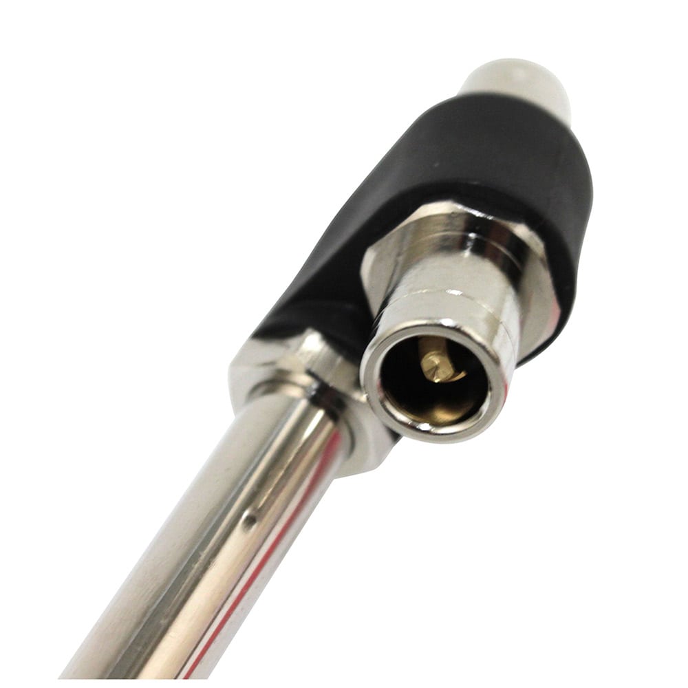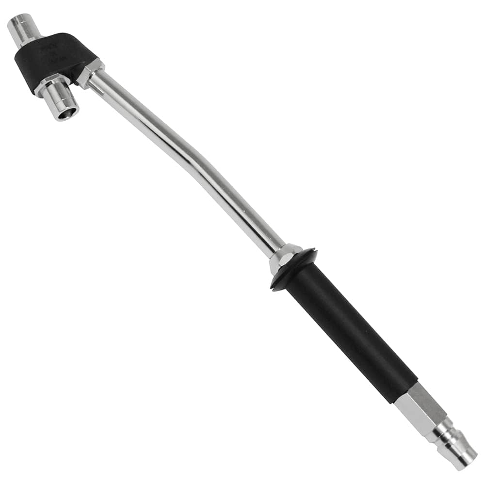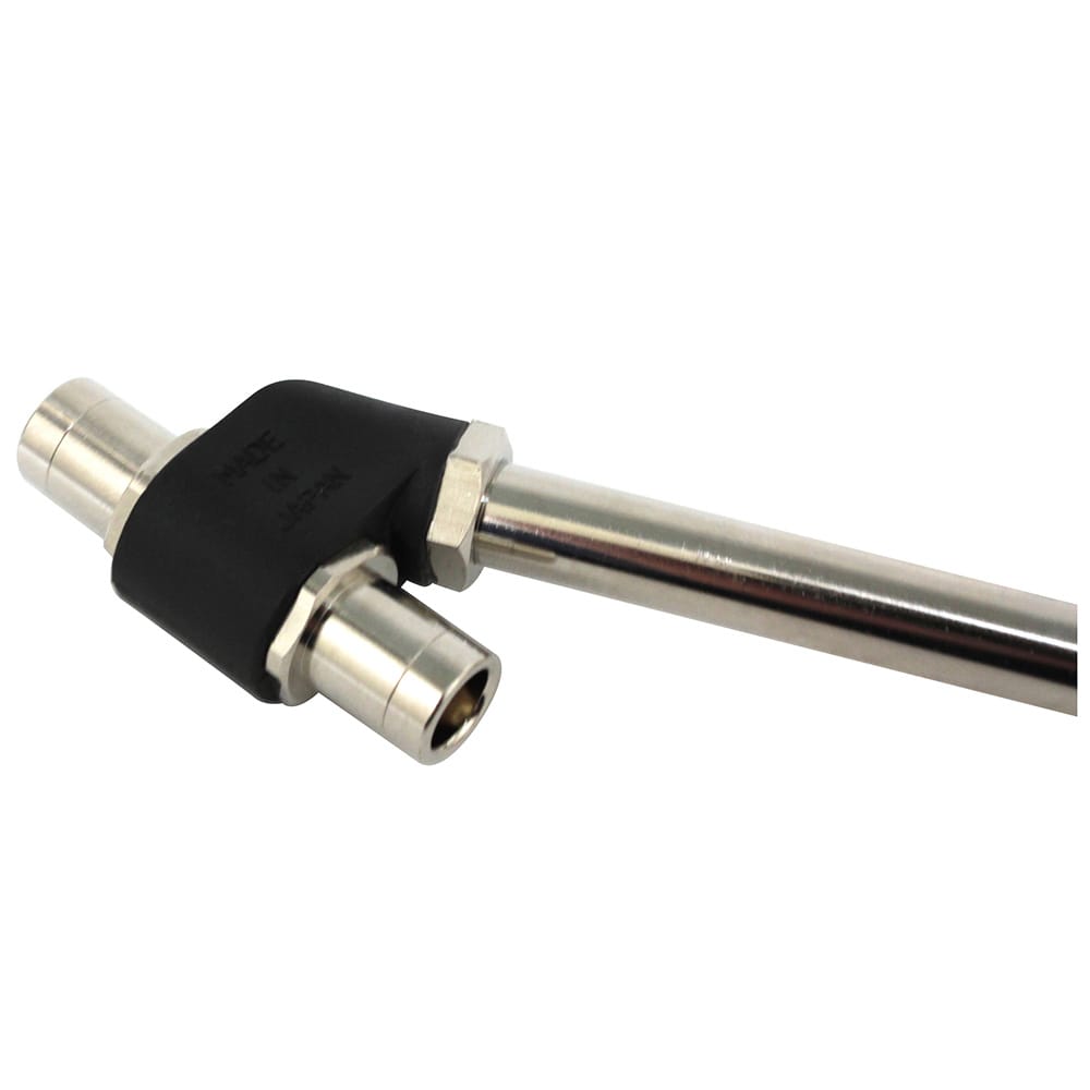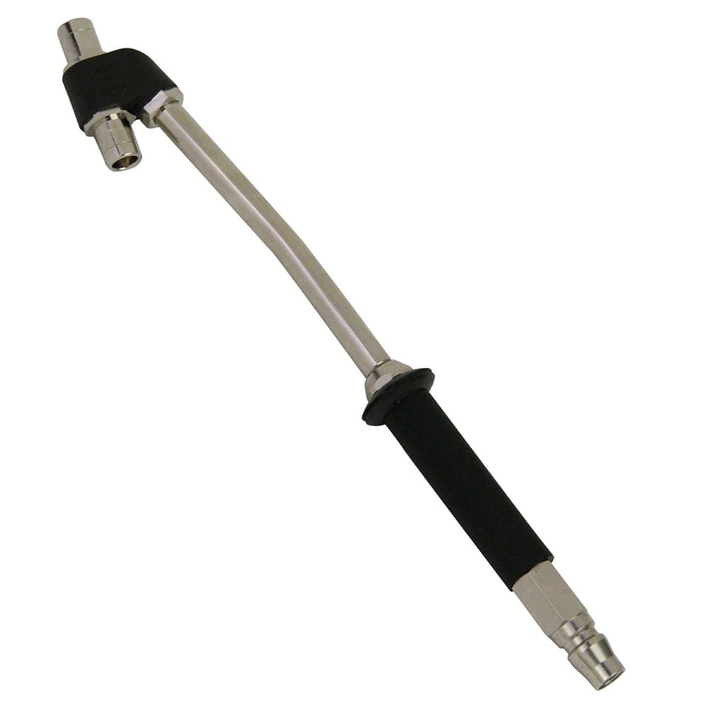 特殊ヘッド機構でむし無しのバルブにも注入可能なエアーチャックです。 圧縮空気を自動車やバイクのタイヤに注入するエアコンプレッサー用タイヤチャック。 自動車やバイクなど米式バルブのタイヤの空気を注入します。 特殊チャックヘッド機構(実用新案登録第3165288号)でむし無しのバルブにも注入可能です。 トラックなどのダブルタイヤにも注入可能な角度付きダブルヘッドです。 掴みやすいツバ付きラバーグリップです。 ●適応車種:小型~大型自動車。 ●対応バルブ:米式バルブ。 ●空気取入口:汎用ワンタッチプラグ。 ●最高使用圧力:1.0MPa。 ●常用圧力:0.8MPa。 ●適応形状:シングル・ダブルタイヤ対応型。 ●全長:274mm。 ●重量:160g。