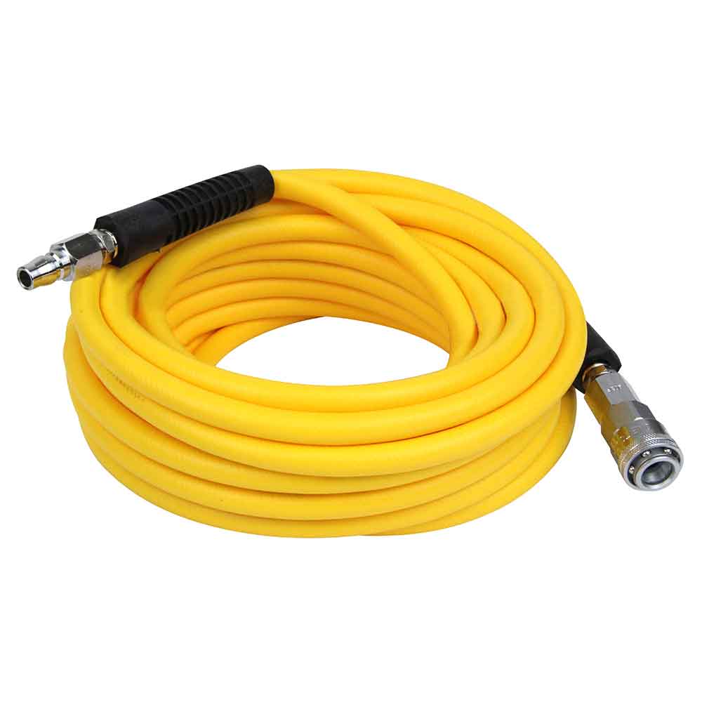 大流量タイプのソフトホースです。 エアーコンプレッサーの圧縮空気専用樹脂ホース。 常圧汎用で最高1.5MPaまで使用できます。 常圧汎用ワンタッチソケットとプラグ付きで接続が簡単です。 ホースガード付きで柔らかいホースのソケットやプラグの付け根の折れを軽減します。 PVC樹脂採用で耐水性がアップしています。 ●サイズ:内径8.0×外径12.5mm。 ●長さ:10m。 ●最高使用圧力:1.5MPa。 ●常用圧力:1.0MPa。 ●接続継ぎ手:20SN/20PN。 ●接続:常圧汎用ワンタッチソケット/プラグ。