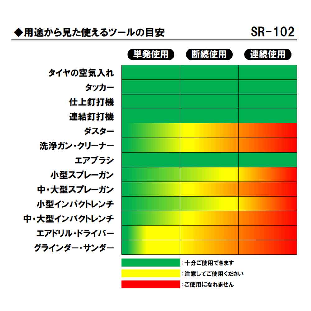 使用前に必ず取扱い説明書をお読みください。 本製品の圧縮空気は人体や動物の送気用には絶対に使用しないでください。 揮発性可燃物(ガソリン・シンナー等)や可燃性ガスのある場所では絶対に使用しないでください。
