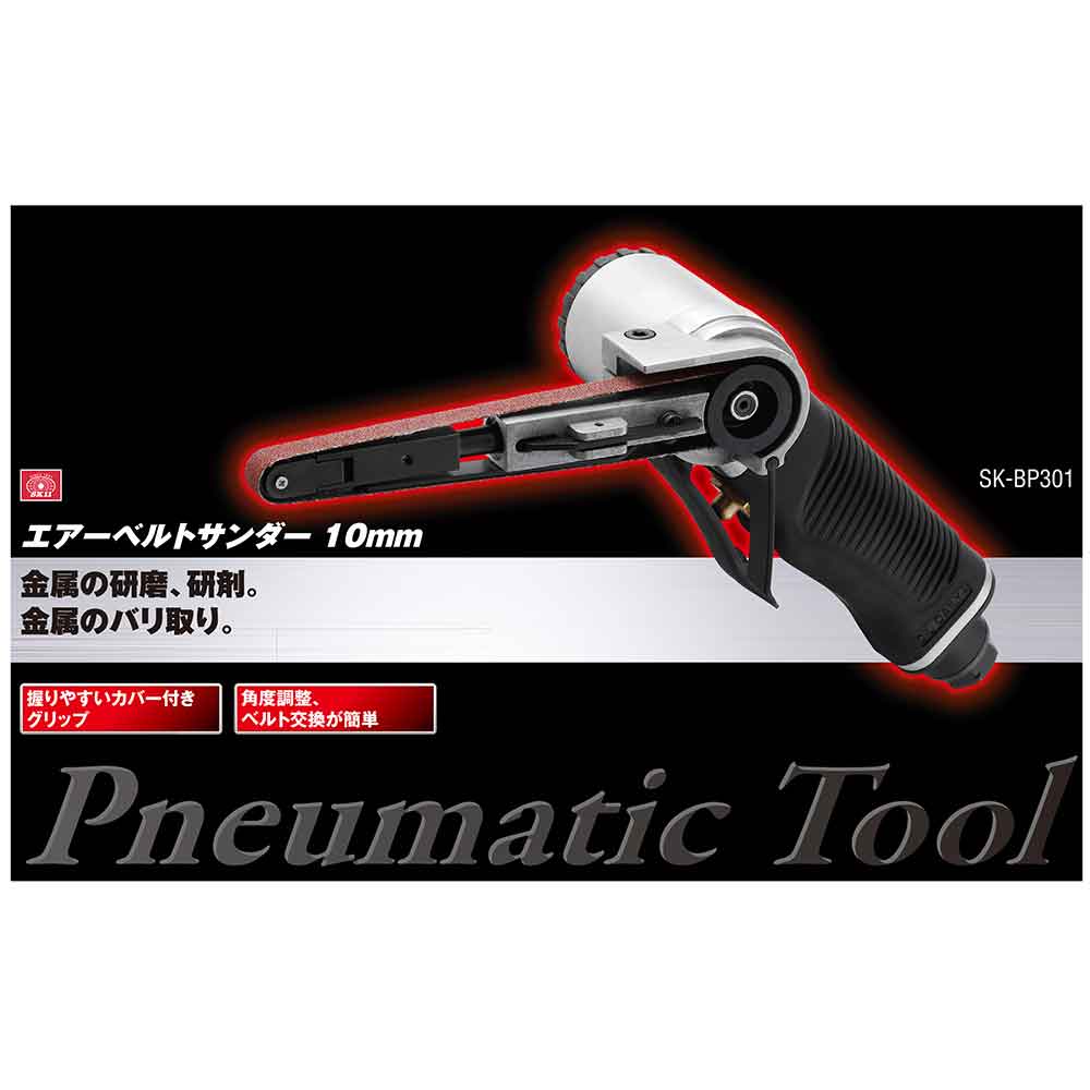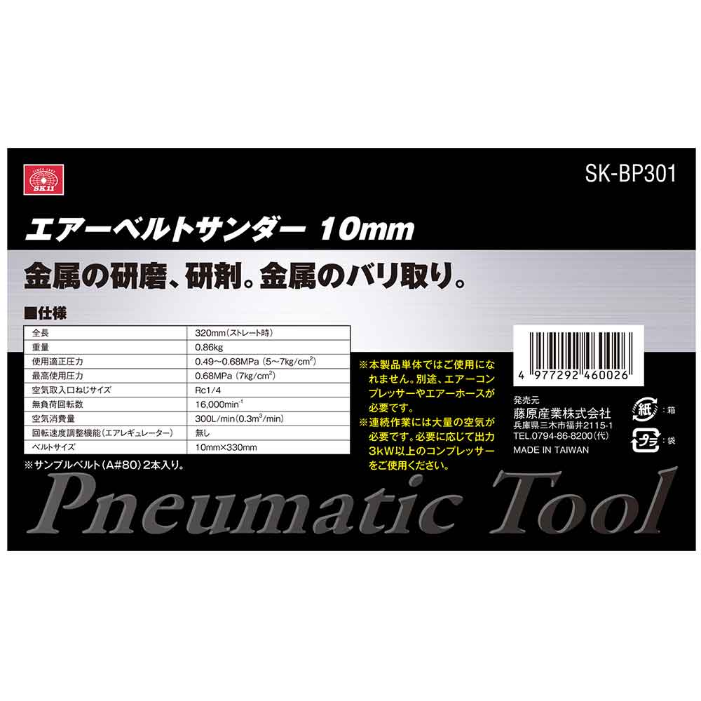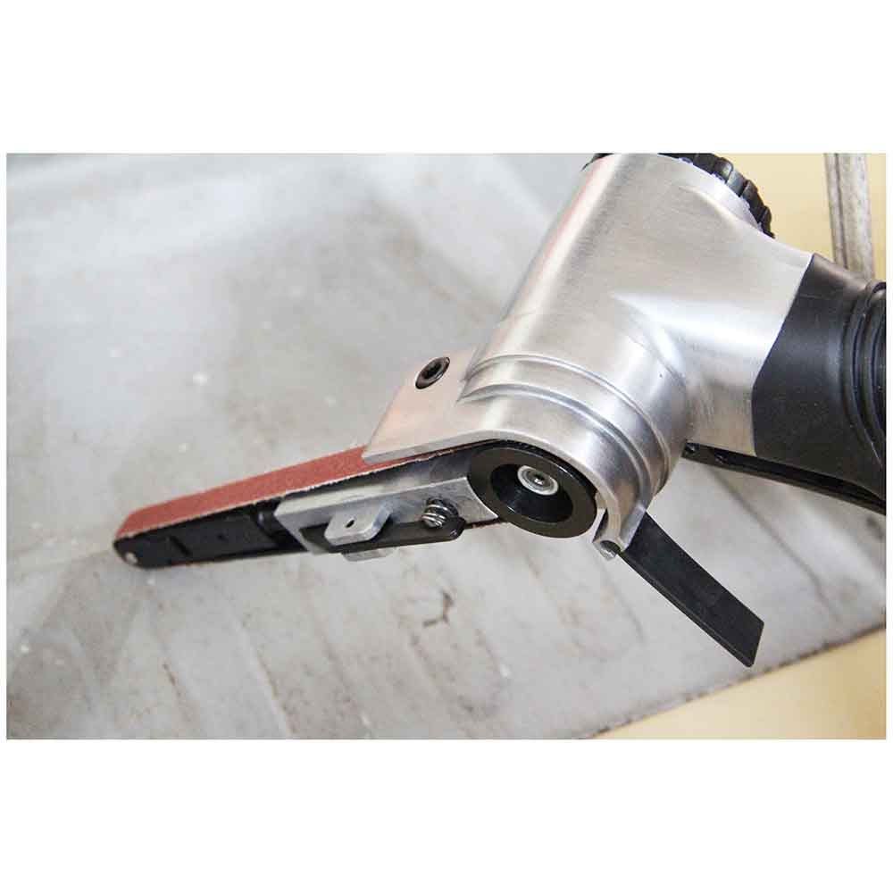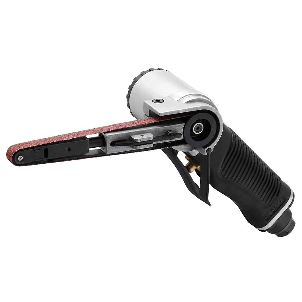 ハードユーザーも安心して使用できる品質と耐久性です。 細かい部分の研磨に最適で金属加工、バリとり、溶接処理、塗装のはく離に使用。 幅10mm全長330mmのベルトが使用できます。 にぎりやすく疲れにくいゴムカバー付きグリップです。 アームの角度が調整でき楽な姿勢で作業できます。 アームストッパー付きで簡単にベルト交換ができます。 ●ベルトサイズ:幅10mm・全長:330mm。 ●無負荷回転数:16000min-1・空気消費量:500L/min。 ●最高使用圧力:0.68MPa・エアー取り入れ口ねじサイズ:Rc1/4。 ●常圧汎用ワンタッチプラグ付。 ●エアーレギュレーター(空気流量調整機能)無。 ●本体サイズ:幅270×高さ100×奥行90mm。 ●重量:860g。 ●ベルトペーパー2枚A80番・六角レンチ4mm。 ●付属品:常圧汎用ワンタッチプラグR1/4ねじ・エアーツールオイル。