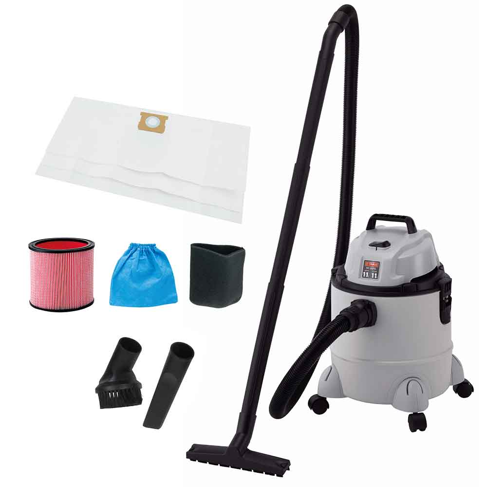 小型で大容量20L、軽くて錆びない樹脂タンクです。 粉塵・液体の吸引・自動車の清掃。 錆びないプラスチックタンク、ほこりの入らない防塵スイッチを採用しています。 ブロワーとしても使用可能です。 集塵容量11L、微細粉塵対応カートリッジフィルター標準装備です。 乾湿両用です。 ●機体サイズ:約51×40×40cm。 ●電源:単相交流100V(50/60Hz共用)・電流:11A・消費電力:1050W。 ●最大真空度:14kPa・最大風量:2.0m3/min。 ●吸込仕事率:180W。 ●集塵容量:11L・吸水容量:11L。 ●電源コード長:約4m(JIS基準)。 ●騒音値:78dB。 ●質量:約4.7kg。 ●セット内容:ワイドノズル・丸毛ブラシ・隙間ノズル・ハンドルグリップ・ペーパーカートリッジフィルター・フレキシブルホース・クロスフィルター・フォームフィルター・集塵袋・キャスター×4・取付ネジ×6。