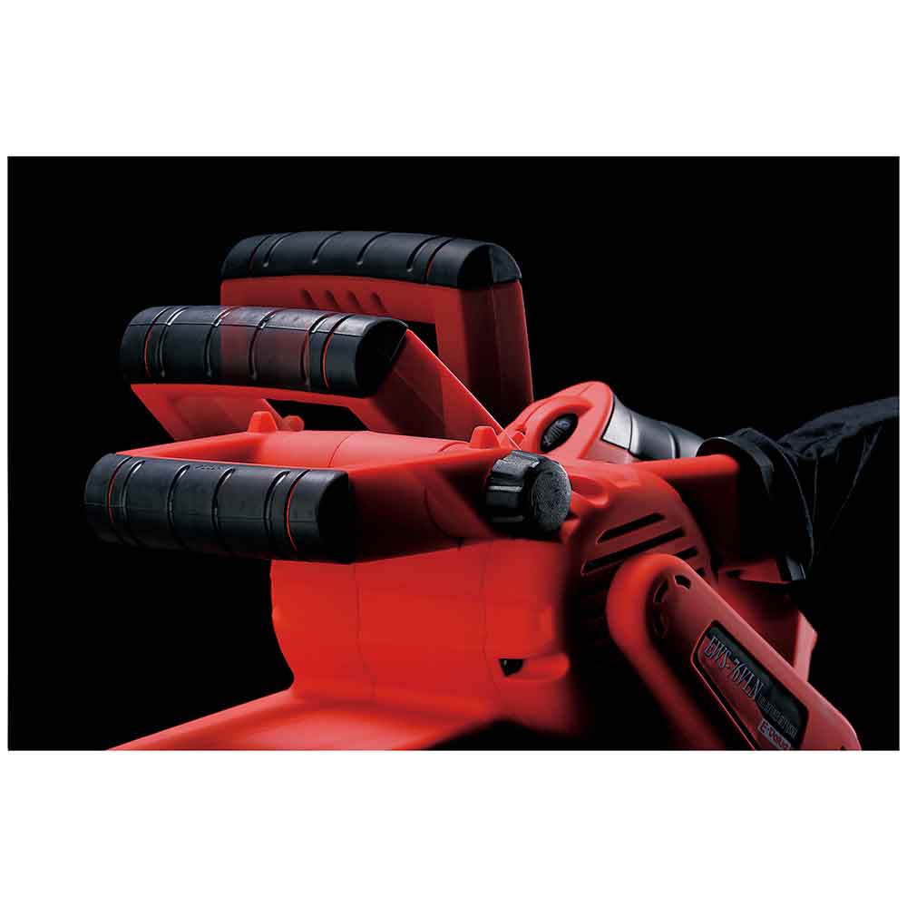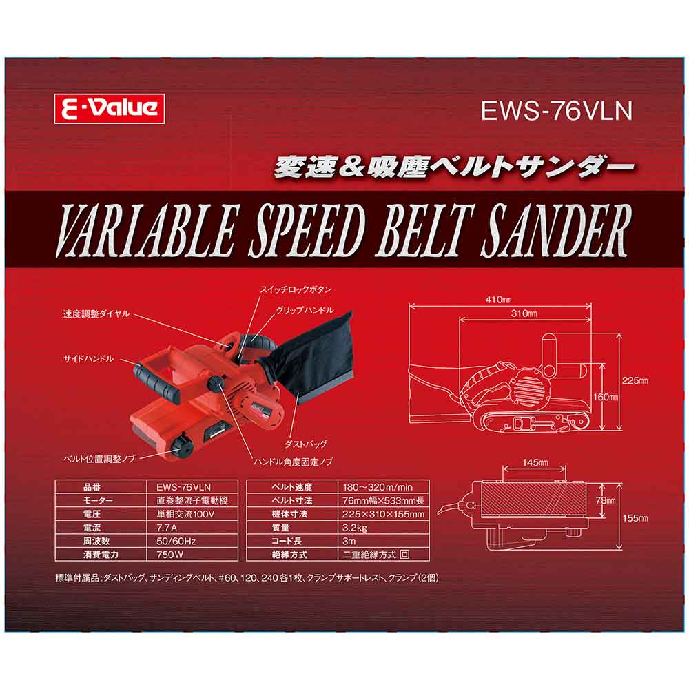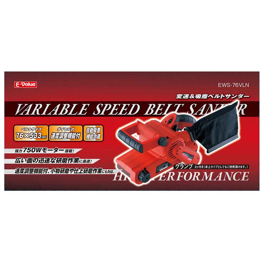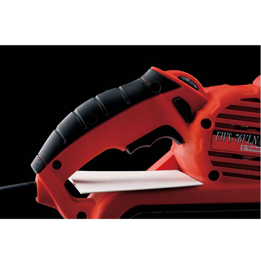 自動集塵機能付きで快適な研磨作業ができます。 自動集塵機能・速度調整機能付きベルトサンダー。 自動集塵機能付きで、発生した粉塵は自動的に集塵袋へ収容でき、粉塵の少ない快適な研磨作業ができます。 ダイヤル式回転速度調整機能付きで、材料や作業の内容に合わせて最適な回転数に調整が可能(調整範囲180m~320m/分)、小物の研磨や粒の小さいペーパーを使った仕上げ研磨は低速回転がおすすめです。 作業状態や自分の好みに合わせて、ハンドル角度を3段階に調整可能です。 強力750Wモーターは短時間で広範囲の研磨作業ができます。 ●ベルトサイズ:幅76mm×長533mm。 ●機体サイズ:約255×310×155mm。 ●ベルト速度:180~320M/分。 ●コード長:約3.0m。 ●本体質量:約3.2kg。 ●電源:単相交流100V(50/60Hz共用)。 ●電流:7.7A。 ●消費電力:750W。 ●セット内容:サンディングベルト(粒度60・120・240各1枚)・ダストバッグ・クランプサポートレスト・クランプ(2個)。